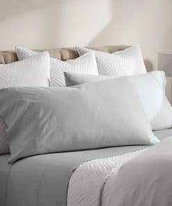 El Juego de sábanas de percal con borde de BOLL & BRANCH en tamaño Twin proporciona una experiencia de sueño de lujo. El tejido de percal es conocido por su sensación nítida y fresca, siendo ideal para mantenerse fresco en las noches cálidas. Hecho de algodón orgánico 100%, puedes descansar tranquilo sabiendo que no hay productos químicos agresivos en contacto con tu piel. La sábana plana y la funda de almohada tienen un elegante borde de 7 pulgadas, mientras que la ajustada tiene un bolsillo elástico completo de 17 pulgadas de profundidad para mantenerla en su lugar en cualquier colchón. Recomendamos lavar en agua fría para mantener la calidad del tejido. Eleva tu experiencia de dormir con el Juego de sábanas de percal de BOLL & BRANCH.