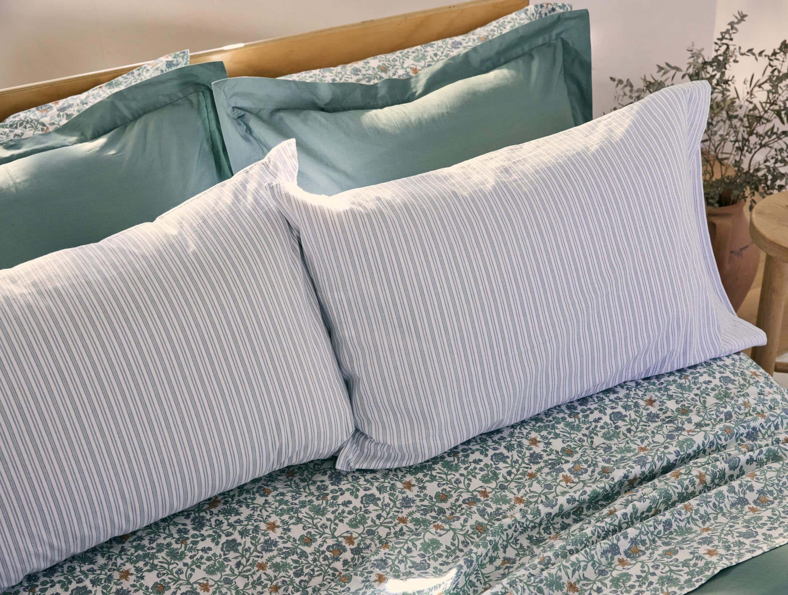 2. Percale Refrescante: Las sábanas de percale ofrecen una sensación fresca que mantiene a los durmientes cálidos cómodos en cualquier clima, creando un mejor flujo de aire y transpirabilidad para aquellos que buscan evitar la incomodidad de las noches calurosas y húmedas. La suavidad del percal de algodón orgánico se encuentra con el abrazo sin pretensiones de unas sábanas sin arrugas. Sábanas bellamente relajadas, naturalmente transpirables y infinitamente suaves para cada temporada.