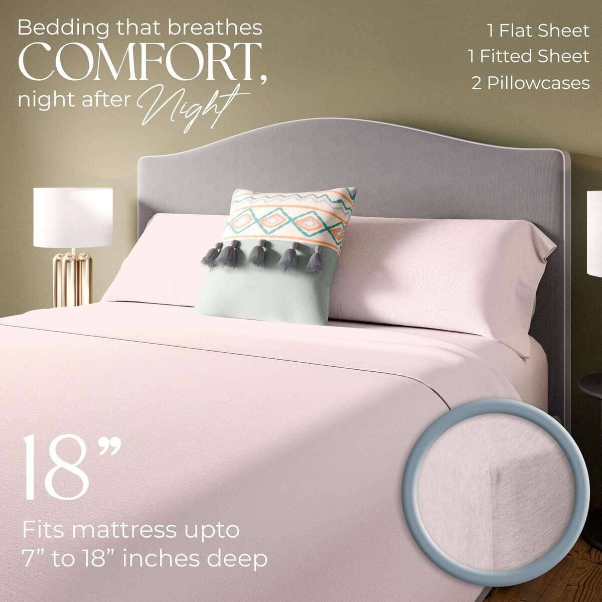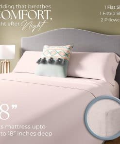 1. Siente la Diferencia de Punto: Tejidas con un tejido de percal clásico, nuestras sábanas y fundas de almohada se sienten más suaves y acogedoras que las sábanas tejidas, mejorando la comodidad general para una experiencia de dormir en las nubes todas las noches. También están tejidas con una estructura de entrelazado para una durabilidad excepcional. 2. Tu Compañero para Todas las Estaciones: Nuestras sábanas y fundas de almohada de punto están diseñadas para ser frescas al tacto, asegurando que te mantengas cómodamente fresco en días soleados mientras permaneces agradablemente cálido en días fríos. 3. Ajuste Perfecto para tu Colchón: Nuestra sábana ajustable tamaño King tiene elástico completo para adaptarse a colchones de hasta 14 pulgadas, permitiendo un montaje ajustado incluso con diferentes profundidades de colchones. También cuenta con una «Etiqueta Inteligente de Cabecera/Pie» para indicar a qué lado pertenece para mayor facilidad de uso. 4. ¿Qué incluye el Set?: Nuestro juego de sábanas tamaño King incluye 1 sábana plana (108 pulgadas de ancho x 102 pulgadas de largo), 1 sábana ajustable (76 pulgadas de ancho x 80 pulgadas de largo) y 2 fundas de almohada estándar (20 pulgadas de ancho x 40 pulgadas de largo) para adaptarse mejor a tus necesidades. 5. Instrucciones de cuidado de lavado: Nuestra ropa de cama, confeccionada con un tejido de percal, es conocida por su notable durabilidad y confort excepcional. Es convenientemente lavable a máquina, manteniendo su color y suavizándose con cada lavado. Sin embargo, para mantener las arrugas a raya, saca rápidamente las sábanas y fundas de almohada de la secadora o planchálas. Ropa de cama de fácil cuidado para estilos de vida ocupados.