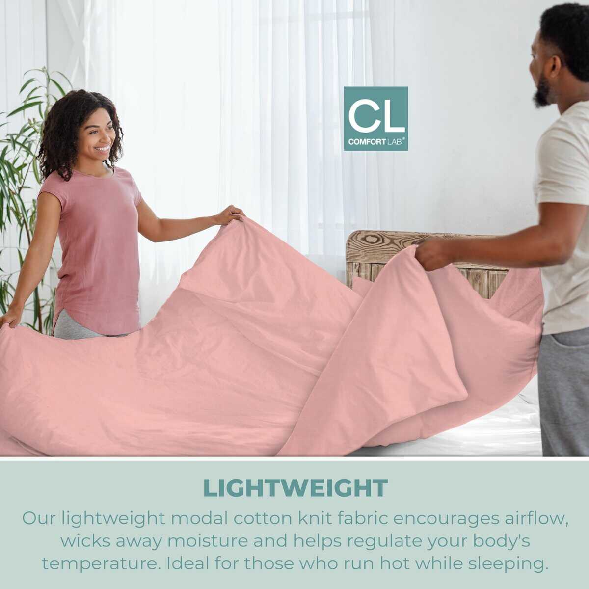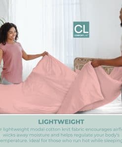 Introduciendo el Juego de Sábanas Comfort Lab Modal Jersey, el cúlmine de lujo y comodidad para todas las tallas de cama. Hecho con una mezcla premium de modal y algodón, nuestro juego de sábanas proporciona una suavidad y transpirabilidad superiores, garantizando una agradable experiencia de sueño durante todo el año. JUEGO DE SÁBANAS COMPLETO – Cada juego incluye 1 sábana ajustable, 1 sábana plana y 2 fundas de almohada, proporcionando un ajuste perfecto a tu tamaño de cama. Ya sea que tengas una cama King, Queen, Double, Twin o Twin XL, nuestros juegos de sábanas están diseñados para satisfacer tus necesidades. Empaquetados cuidadosamente en una bolsa de tela, nuestros juegos de sábanas ofrecen comodidad y organización. CALIDAD PREMIUM Y COMODIDAD MÁXIMA – Hechas de una mezcla de modal y algodón, nuestras sábanas de punto de jersey modal ofrecen una suavidad, transpirabilidad y propiedades de absorción de la humedad sin igual. Experimenta la sensación de confort similar a tu camiseta favorita ya usada, mientras disfrutas de un efecto refrescante en clima cálido y calidez durante las temporadas más frías. ELECCIÓN DE REGALO IDEAL – Con un confort excepcional y una apariencia lujosa, nuestras sábanas de modal jersey son el regalo perfecto para cualquier ocasión. Adecuadas para todas las edades y estilos de dormitorio, añaden un toque elegante a cualquier espacio. PRODUCTO VERSÁTIL PARA TODAS LAS ESTACIONES – Diseñadas para todas las estaciones, nuestras sábanas ofrecen comodidad y relajación constante durante todo el año. El tejido jersey se adapta perfectamente, se ajusta a colchones de diferentes profundidades, proporcionando una superficie de descanso segura y cómoda. DETALLES ESTILOSOS Y FÁCIL CUIDADO – Con detalles de ribetes sobrehilados, nuestros juegos de cama añaden un toque contemporáneo mientras mejoran la durabilidad para un uso a largo plazo. Lavables a máquina y fáciles de cuidar, nuestras sábanas de modal jersey conservan su suavidad, color y calidad lavado tras lavado. Disponibles en una variedad de colores sofisticados, incluyendo rosa blush, carbón, eucalipto, azul claro, gris claro, azul marino, marrón claro, verde azulado y blanco, nuestros juegos de sábanas de modal jersey complementan sin esfuerzo cualquier decoración de dormitorio, elevando tu santuario de sueño a nuevas alturas de confort y estilo. Descubre el lujo definitivo con el Juego de Sábanas Comfort Lab Modal Jersey y transforma tu experiencia de sueño hoy.