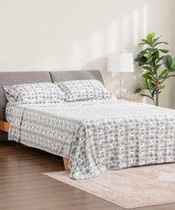 4. Juego de sábanas para cama tamaño completo: Este set de 4 piezas incluye una sábana plana (82″ x 90″), una sábana ajustable (49″ x 73″) y dos fundas de almohada (20″ x 30″) para equipar completamente tu cama tamaño completo.