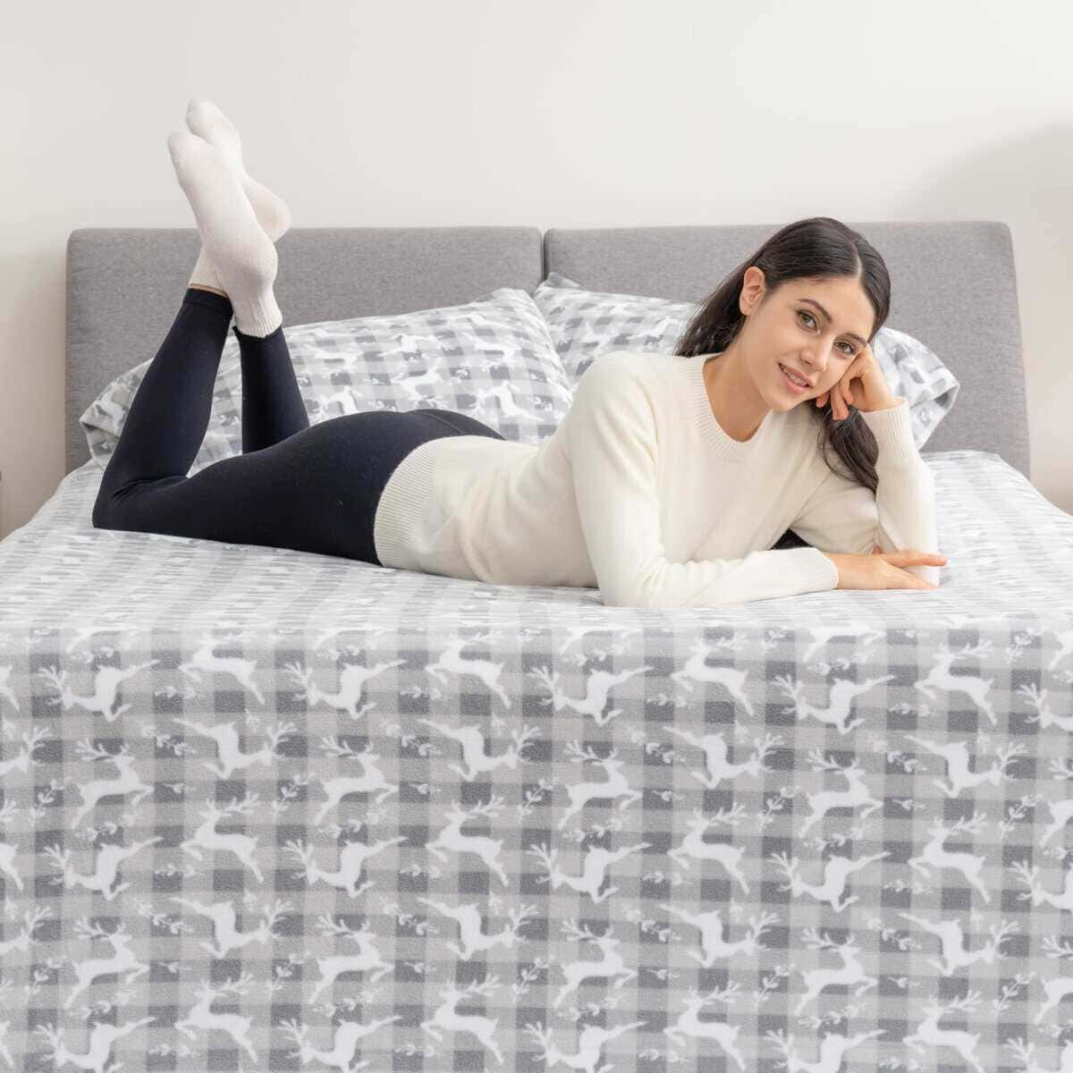 2. Decoración elegante y acogedora: Este juego de sábanas de microfelpa viene en una variedad de encantadores estampados, que incluyen Cardenal, Reno, Bosque de Acuarela y Copo de Nieve Helado. Estos patrones estacionales ofrecen un toque divertido adicional a tu decoración.