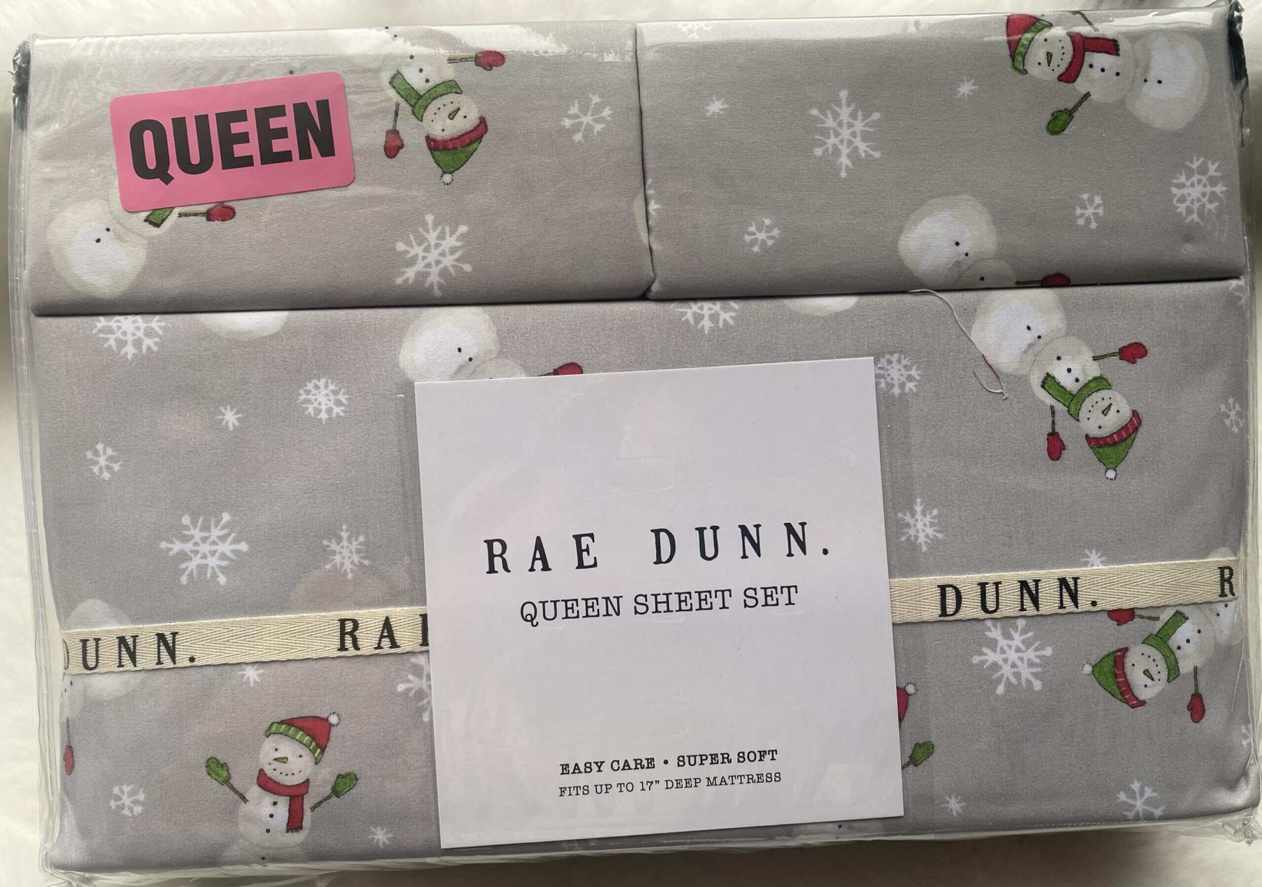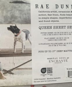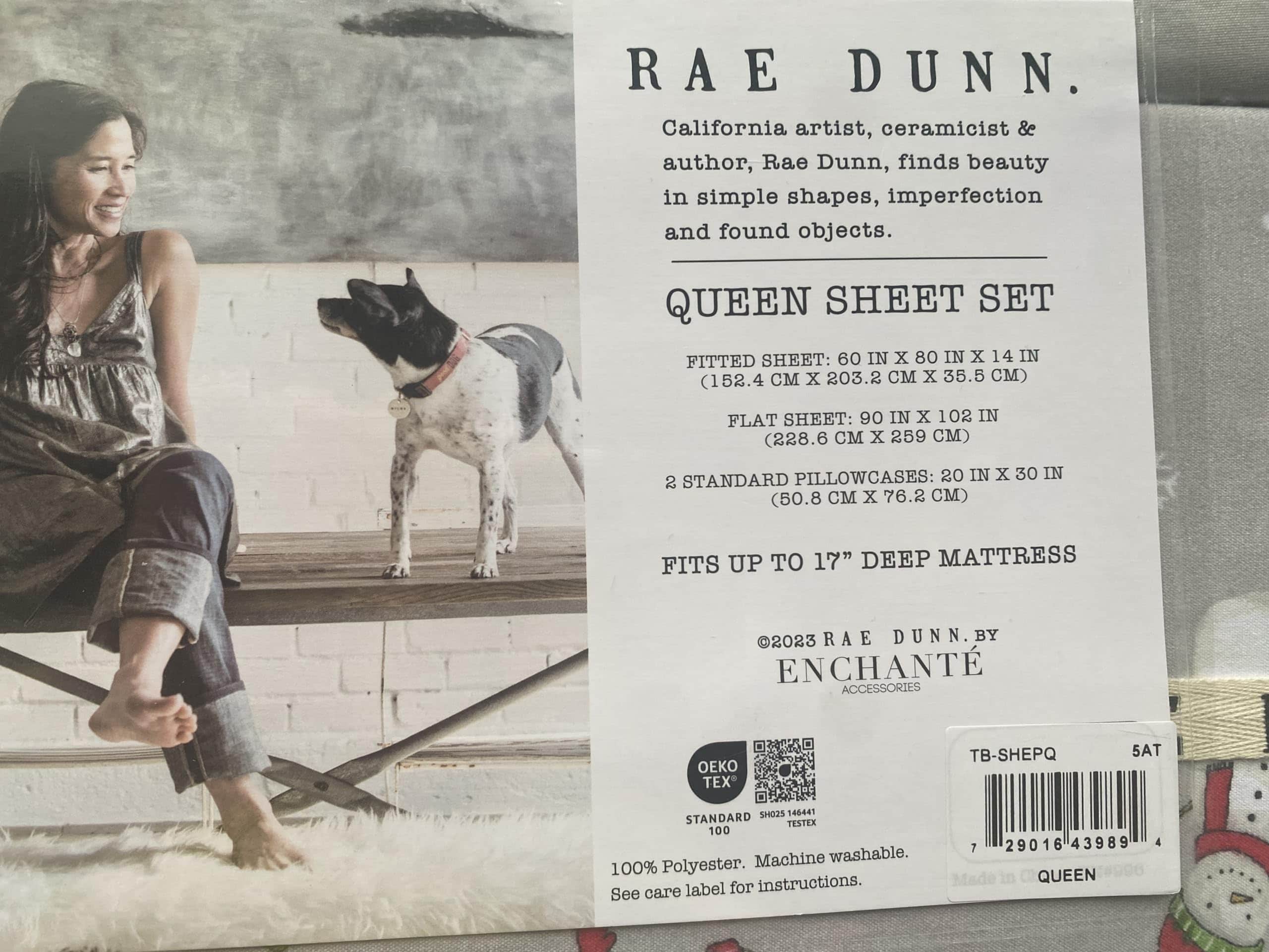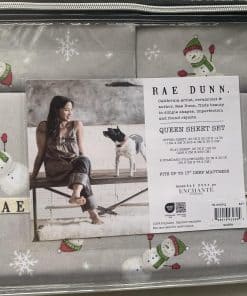Juego de sábanas de Rae Dunn con temática navideña para cama Queen. Se ajusta a colchones de hasta 17″ de profundidad. Incluye 4 piezas de material 100% poliéster. Lavable a máquina.