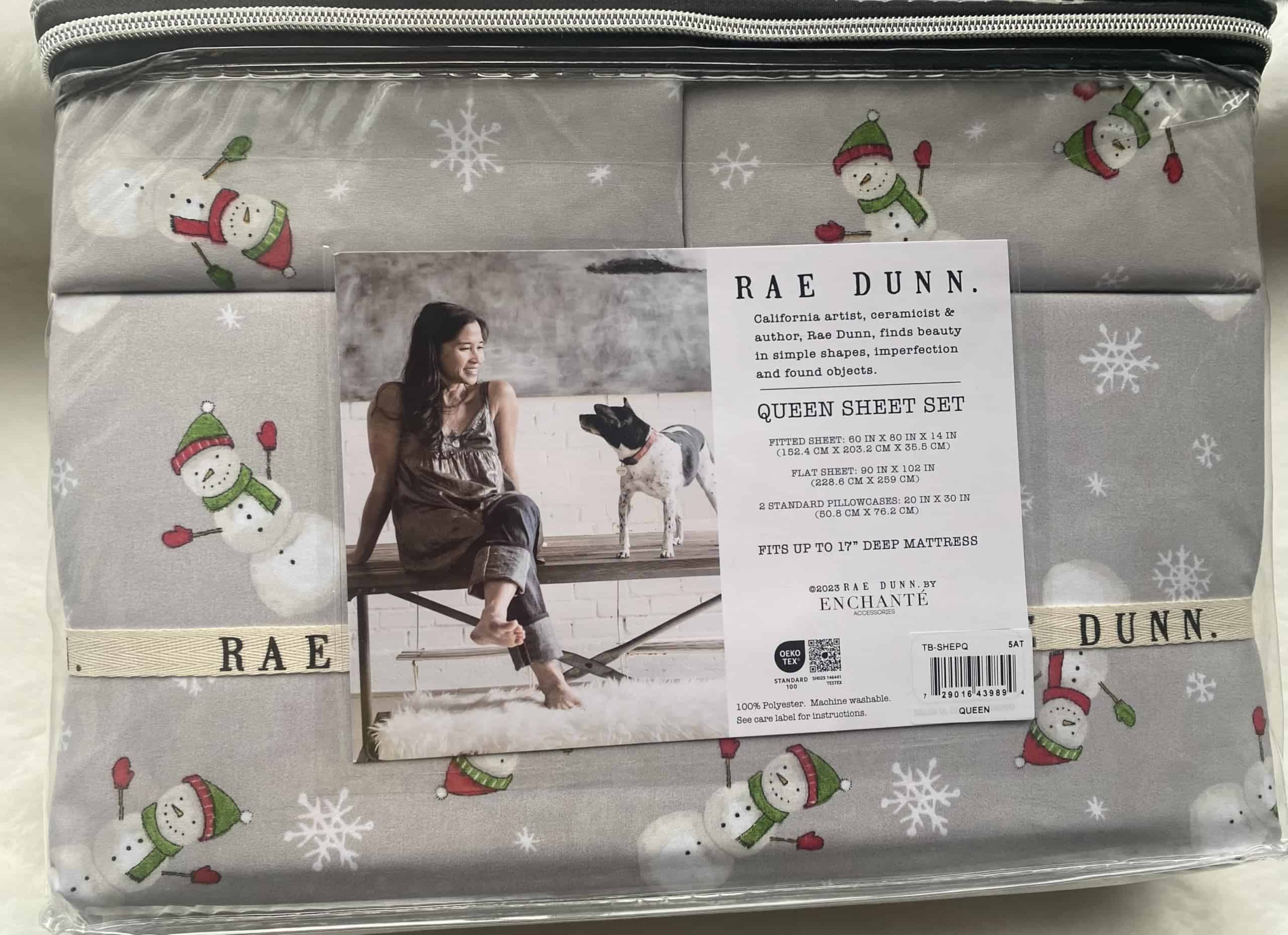 Juego de sábanas de Rae Dunn con temática navideña para