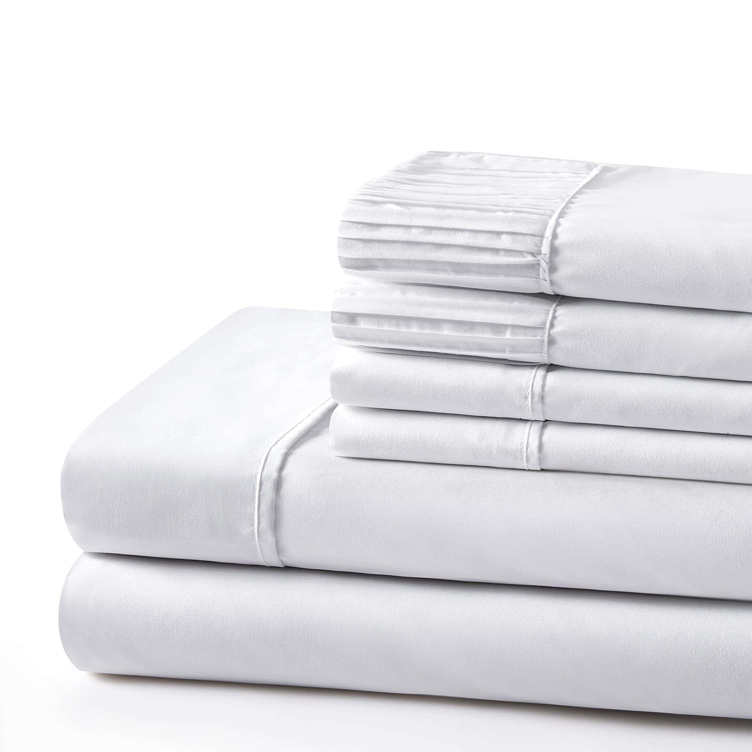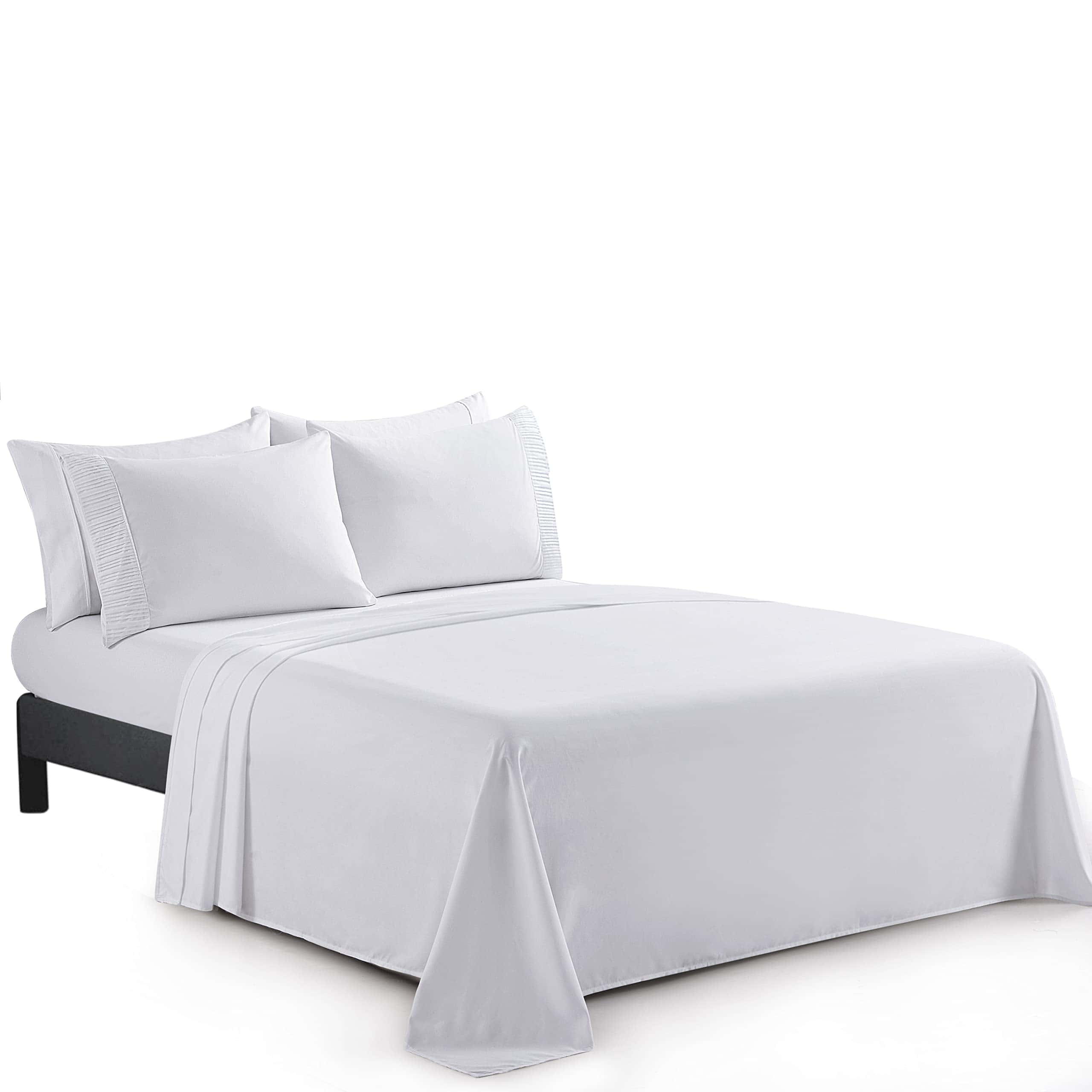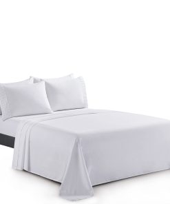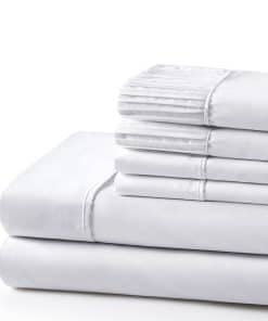 1. Diseño – Ropa de cama con diseño plisado en los extremos de 2 fundas de almohada. Nuestro Poliéster de 120 GSM Doble Cepillado y Rayón de Bambú es suave y duradero, con un tejido transpirable. 2. Tamaño y Dimensiones – Este tamaño doble/completo incluye 1 sábana plana de 81 x 96 pulgadas, 1 sábana ajustable de 54 x 75 + 15 pulgadas, 2 fundas de almohada plisadas de 20 x 30 pulgadas y 2 fundas de almohada lisas extra de 20 x 30 pulgadas. 3. Material – 85% Poliéster y 15% Rayón de Bambú. El juego de sábanas está hecho de un tejido ultrafino de Poliéster de doble cepillado y Rayón de Bambú que es super suave, resistente a las arrugas. 4. Característica – La sábana ajustable de bolsillo profundo es completamente elástica y se ajusta hasta 16 pulgadas. Duradero, sin formación de bolitas, muy suave, sin arrugas, prelavado, resistente a la decoloración, hipoalergénico, transpirable. Hermosamente empacado en una bolsa con cremallera. 5. Instrucciones de Cuidado Fáciles – Lavable a máquina con agua fría. Lavar por separado blancos y colores. No usar lejía en colores. Secar en secadora a baja temperatura.