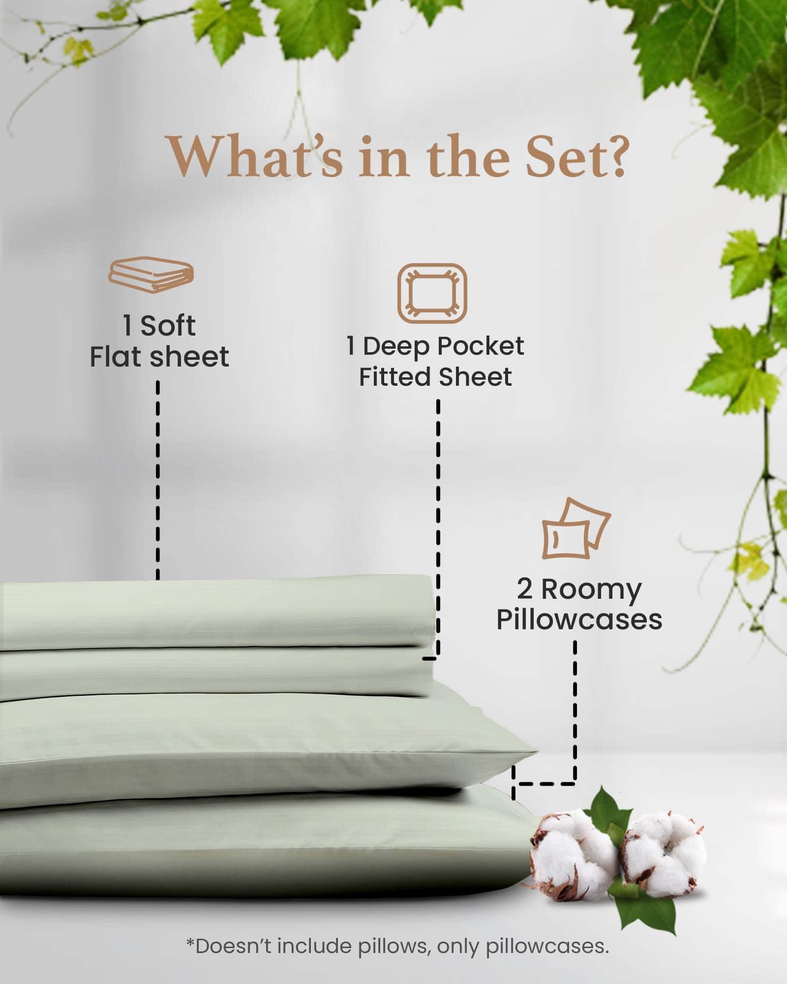 Juego de Sábanas de RV King de Lujo de 600 TC en Sage, 72 x