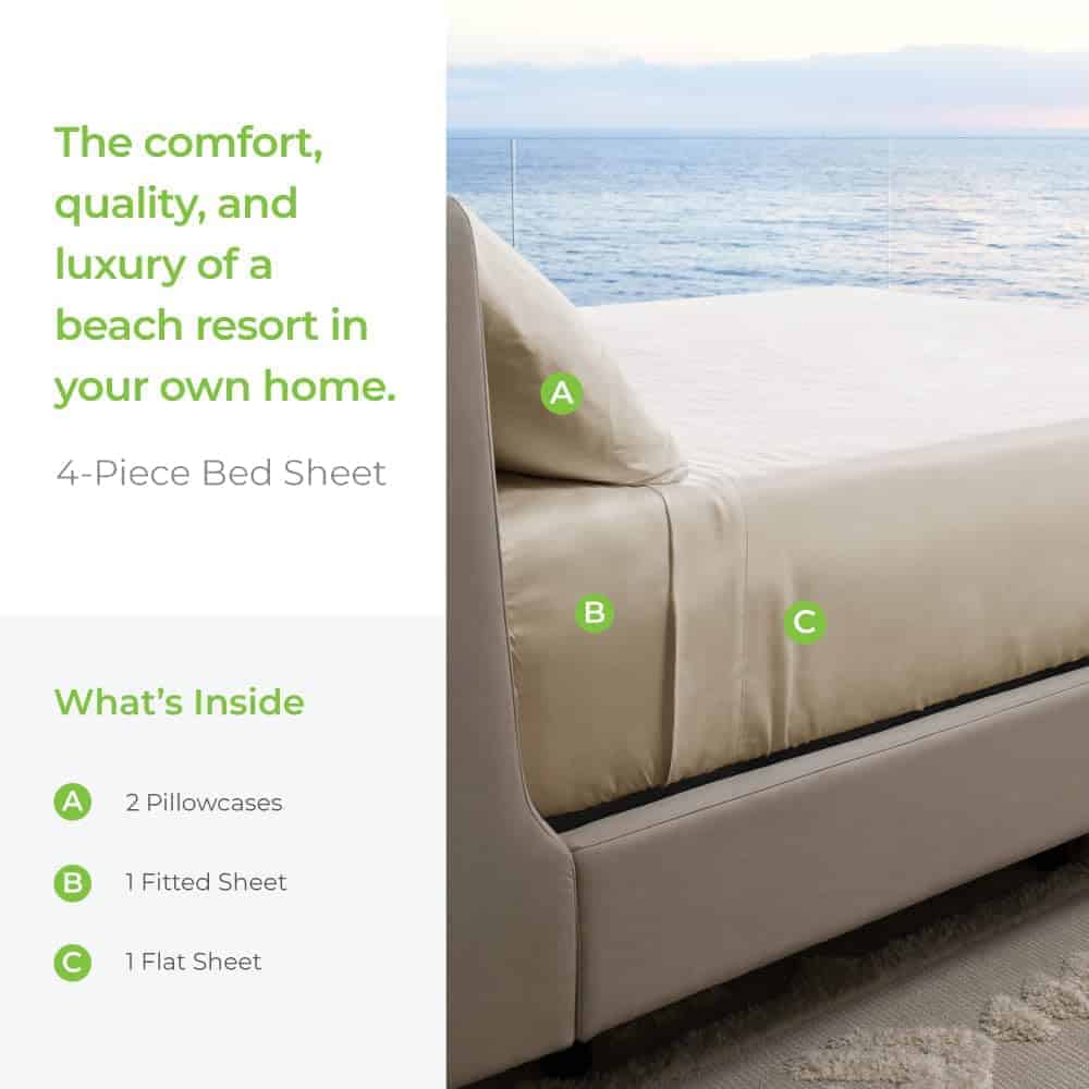 Experimenta el lujo de un resort playero en casa con las sábanas de Resort de Cariloha. Con un acabado de sarga premium y costuras de caja avanzadas, estas sábanas ofrecen confort y durabilidad para noches reparadoras. La tela te mantiene fresco en verano y cálido en invierno. Diseñadas para prevenir la formación de bolitas y el encogimiento. Despertarás sintiéndote renovado y abrazarás una experiencia de sueño tipo resort cada noche.