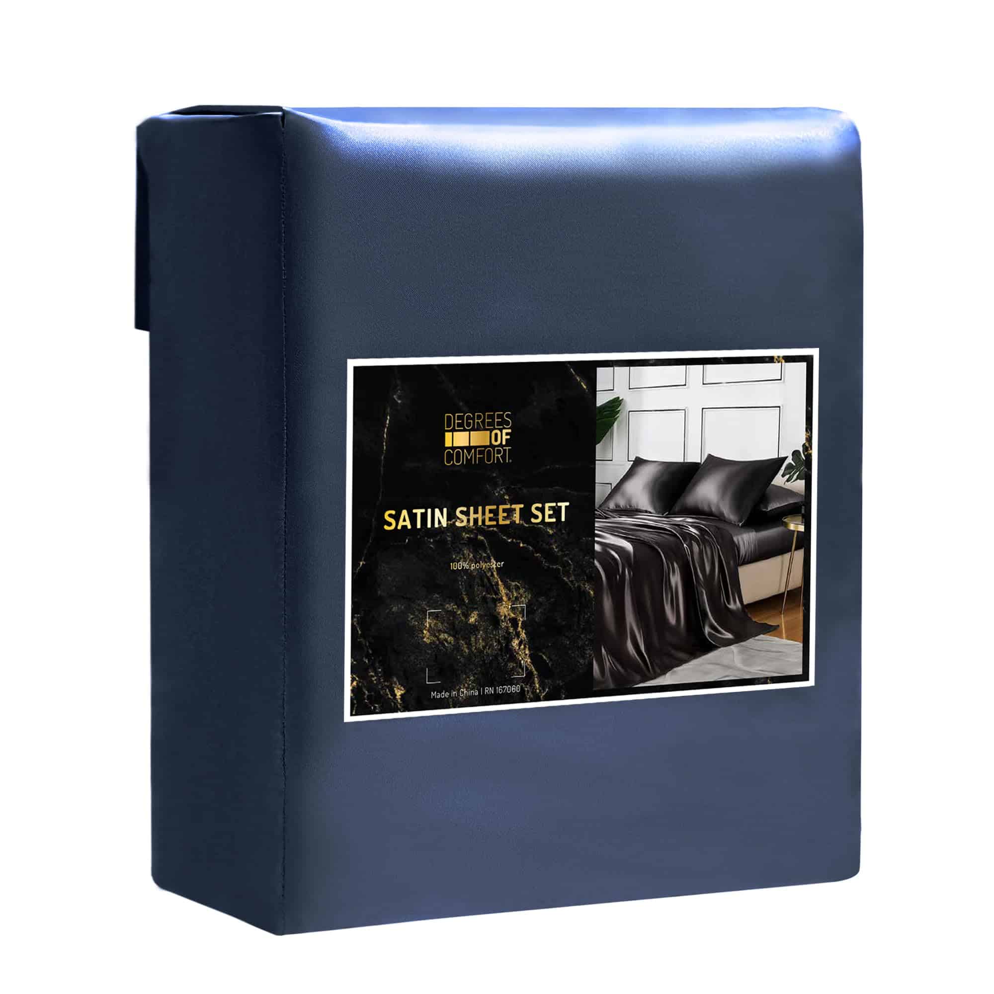 Juego de sábanas de satén azul medianoche Degrees of