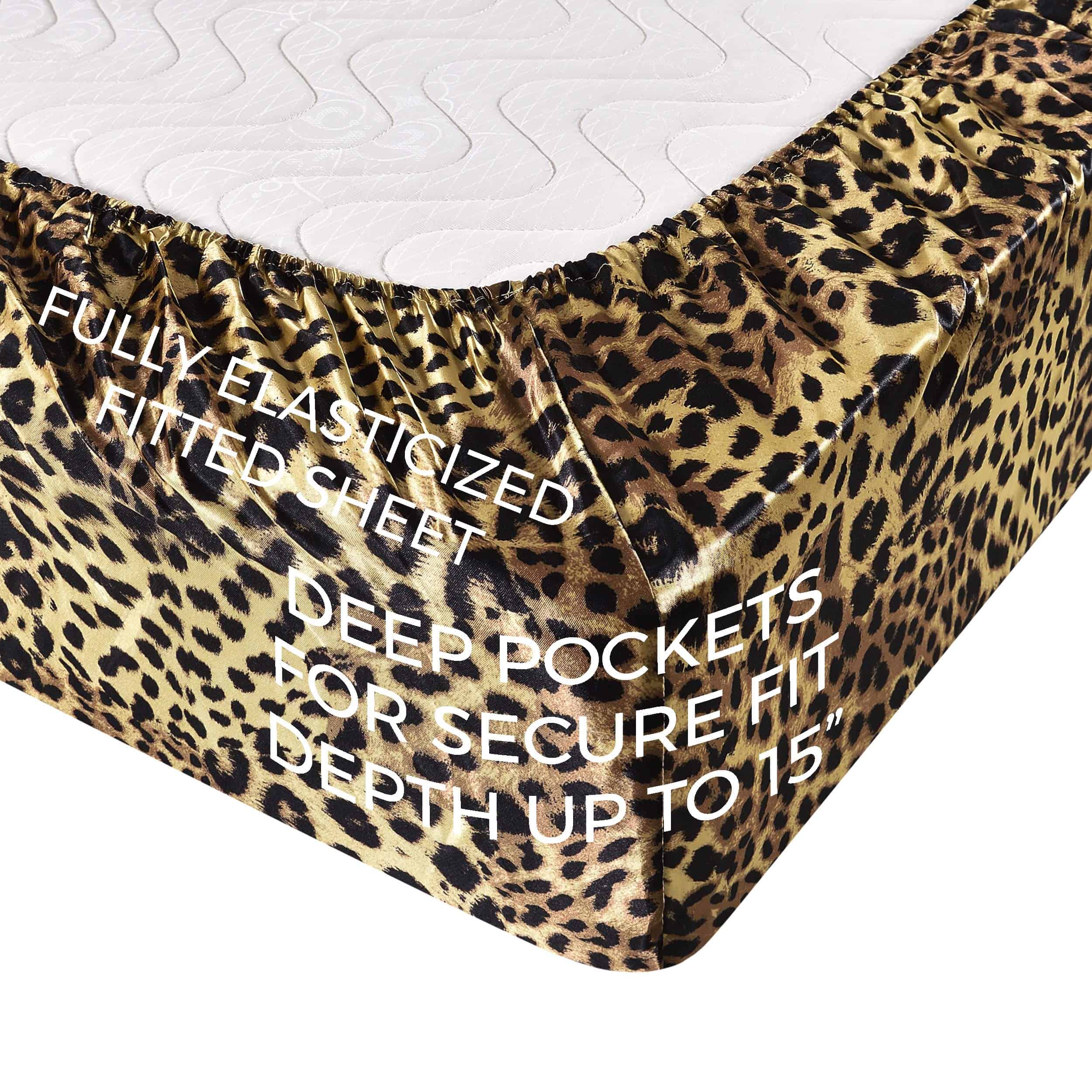 Juego de Sábanas de Satén California -Leopardo Dorado