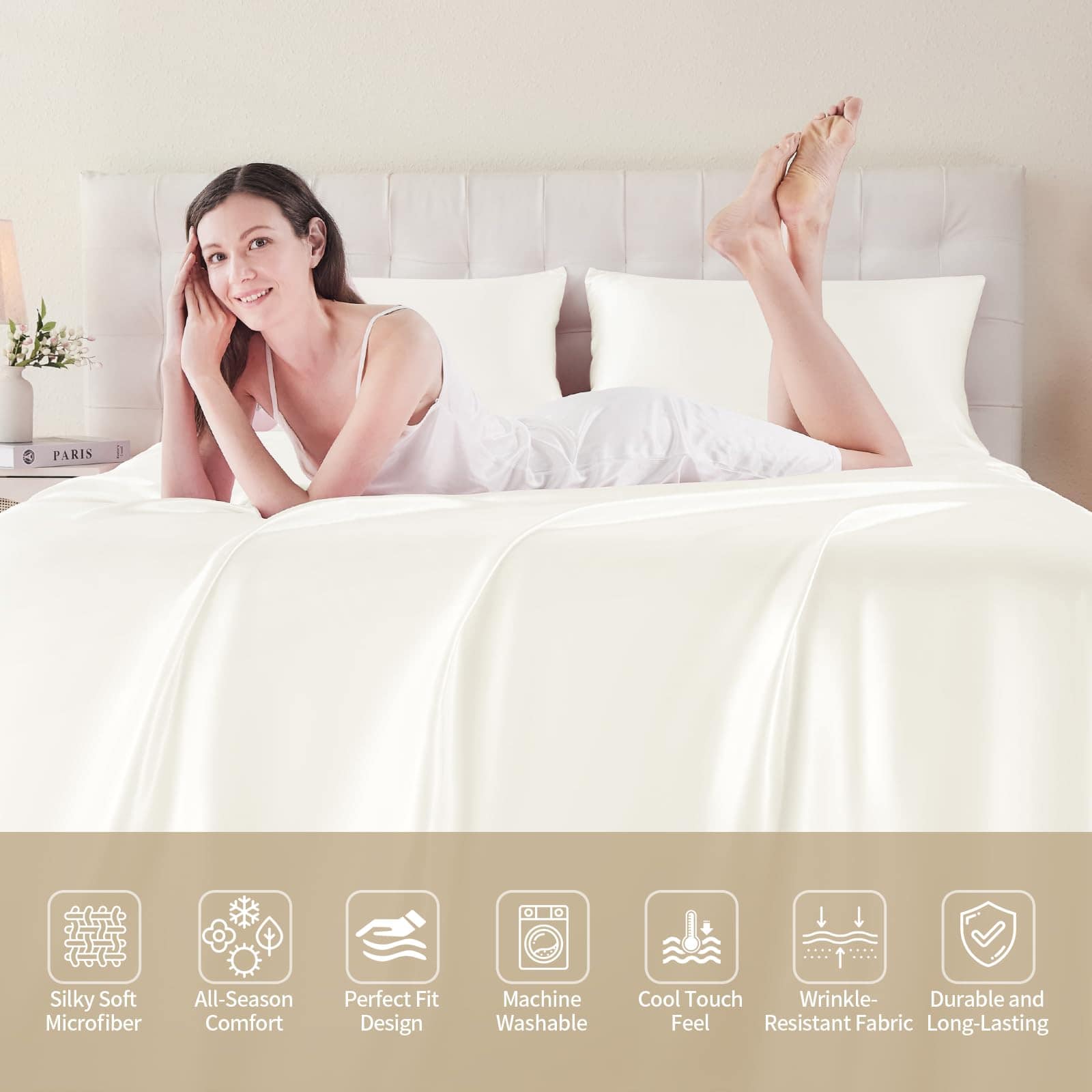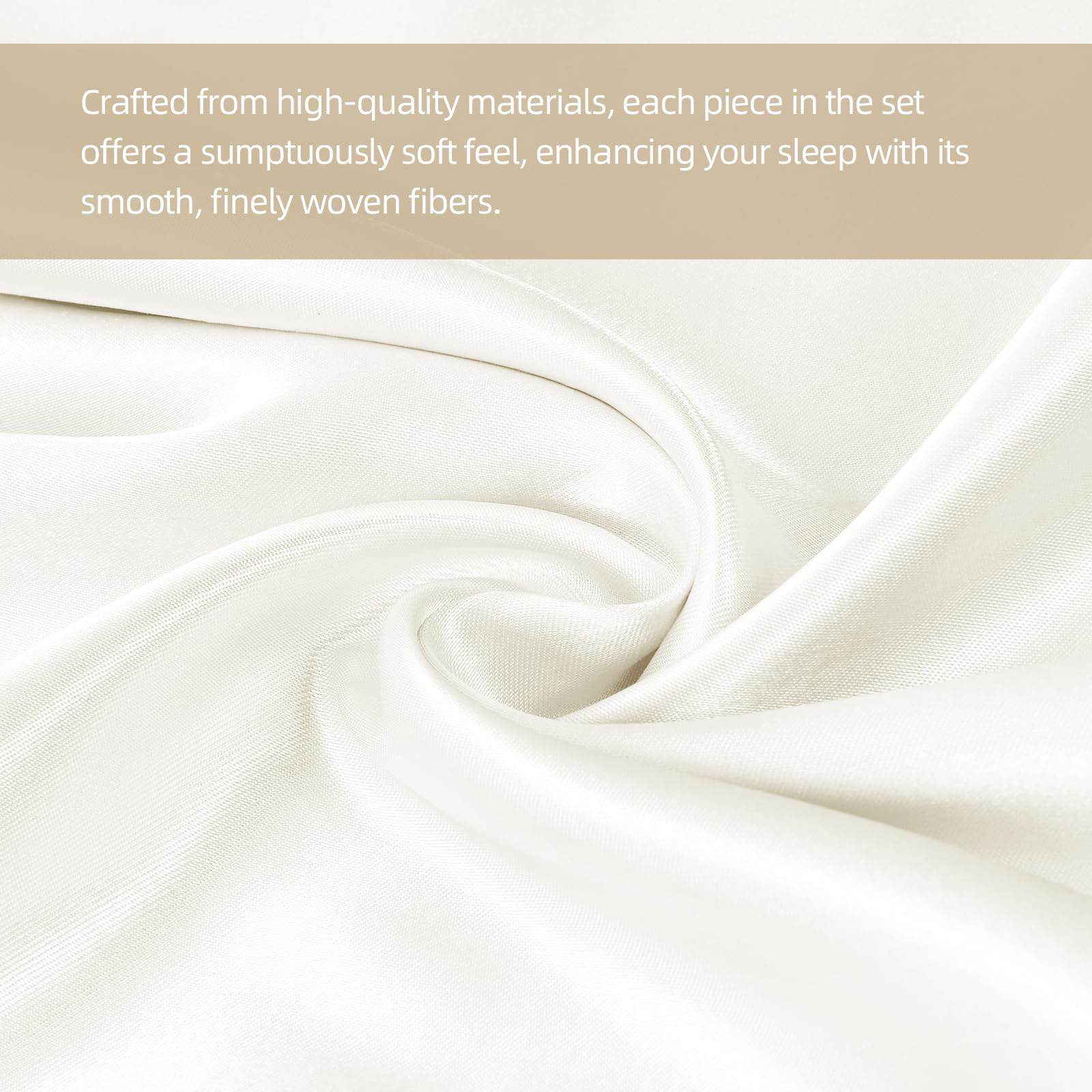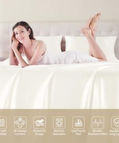 Cada juego de sábanas incluye una sábana ajustable de bolsillo profundo que se adapta perfectamente a los colchones más gruesos, asegurando un ajuste suave y seguro durante toda la noche. Además, nuestras sábanas de satén son fáciles de mantener, ya que son lavables a máquina en agua fría y se pueden secar a baja temperatura, manteniéndose libres de arrugas y suaves como la seda.