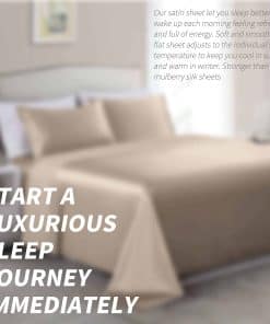Las Sábanas de Satén Cobedzy de 4 Piezas en tamaño King ofrecen lujo y comodidad a un precio asequible. Están hechas de tela de Satén (100 por ciento Poliéster), que es transpirable y suave al tacto. Dormir en sábanas de satén permite que la piel se mueva libremente y la seda no absorbe la humedad de la piel y el cabello, manteniendo tu cabello suave y tu piel suave para prevenir líneas faciales. Este juego de sábanas de satén es más duradero y resistente que las sábanas de seda de morera real. El paquete de lujo incluye 1 sábana plana de 108 x 102 pulgadas, 1 sábana ajustable de 78 x 80 pulgadas y 2 fundas de almohada de satén de 20 x 40 pulgadas. La sábana ajustable tiene un bolsillo profundo con elástico alrededor de todo, lo que facilita el cambio de los núcleos de almohada. Es apta para colchones profundos de 14 a 16 pulgadas. Estas sábanas son fáciles de cuidar, ya que son resistentes a las manchas, decoloración, encogimiento y arrugas. Se pueden lavar a máquina en frío y secar en secadora a temperatura baja. No es necesario planchar, lavar en seco ni blanquear. Son excepcionalmente resistentes al color y más duraderas que las de algodón, por lo que incluso después de años de uso regular se verán tan vibrantes como la primera noche en que las disfrutaste. Este juego de sábanas de lujo no solo ofrece una amplia variedad de opciones de color elegantes para combinar con la decoración de tu habitación, sino que su precio razonable hace que el lujo sea accesible para todos. Con diseños de bolsillo profundo que se adaptan a colchones de hasta 14-16 pulgadas de grosor, puedes disfrutar de un ajuste ceñido que evita el deslizamiento y te proporciona noches de sueño reparador y rejuvenecedor.