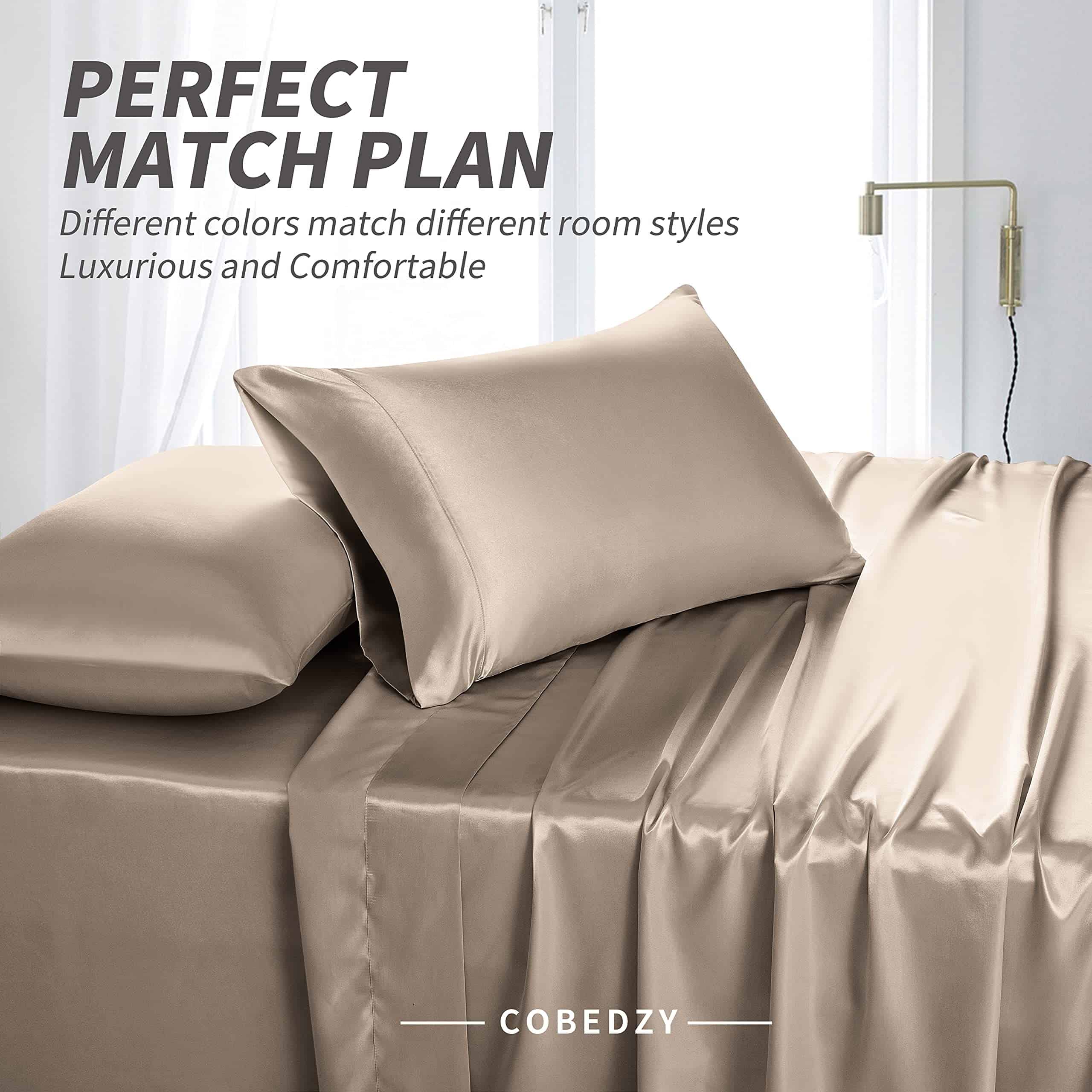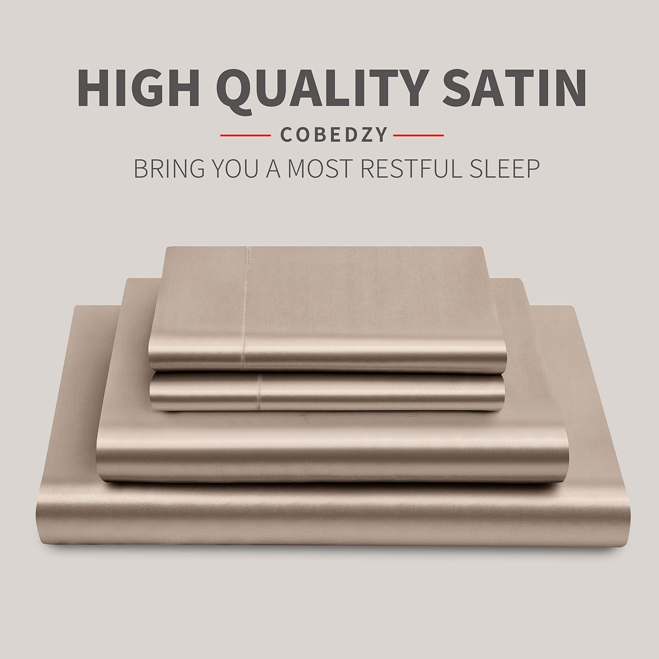 Juego de Sábanas de Satén Cobedzy de 4 Piezas Tamaño King,