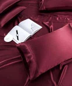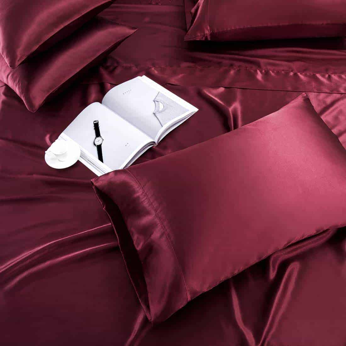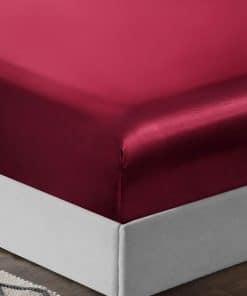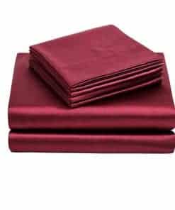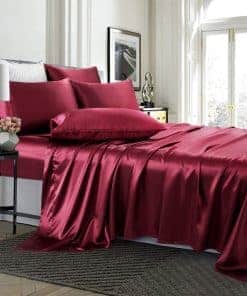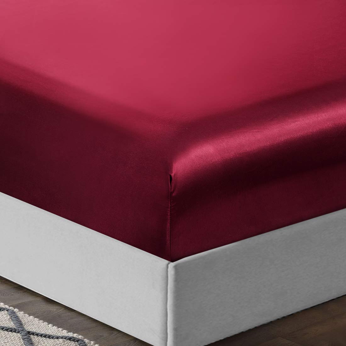 Juego de sábanas de satén color burdeos de TREELY – Tamaño