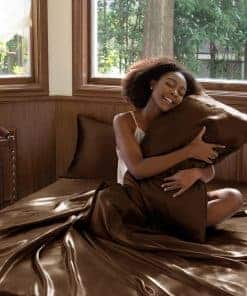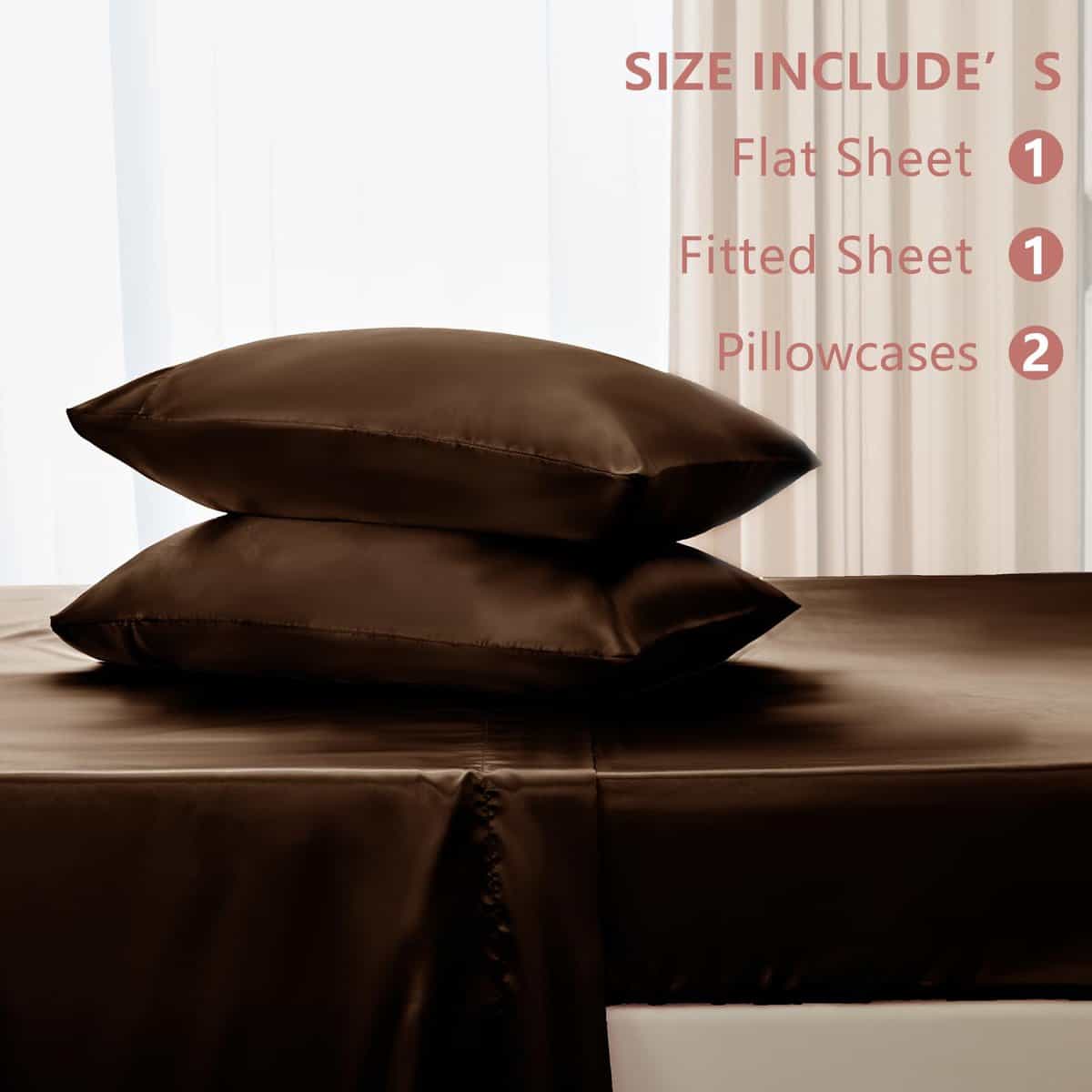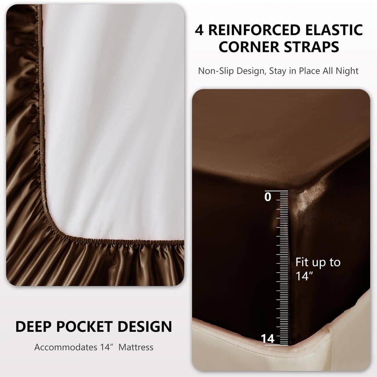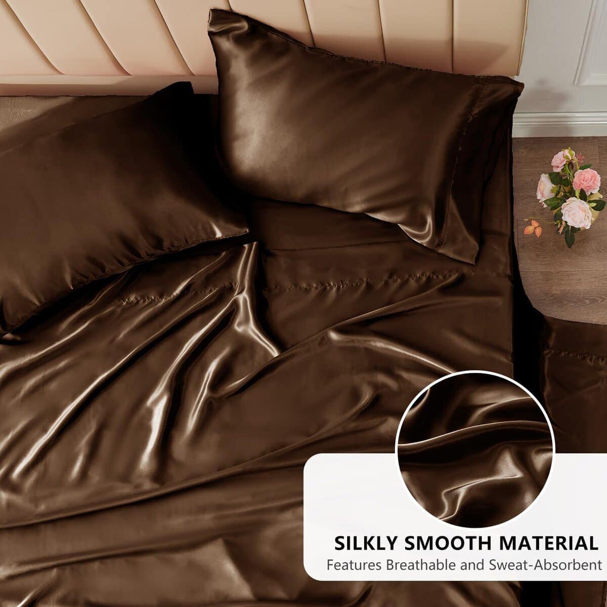 Juego de Sábanas de Satén CozyLux King Size – -Café