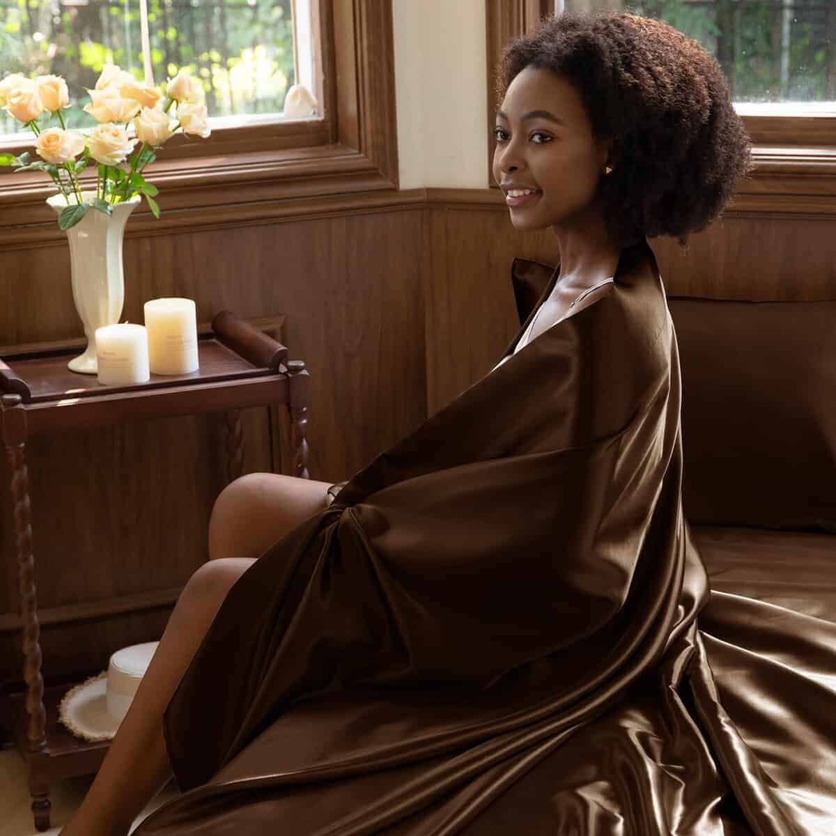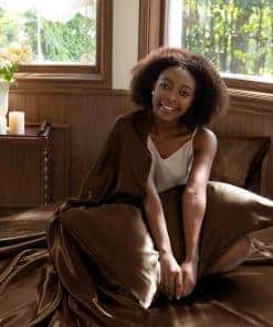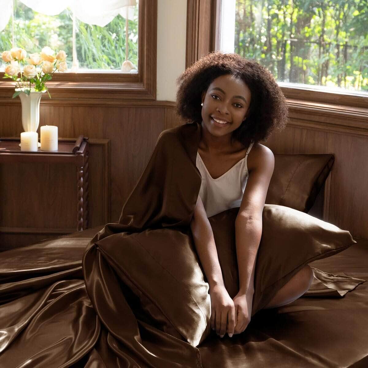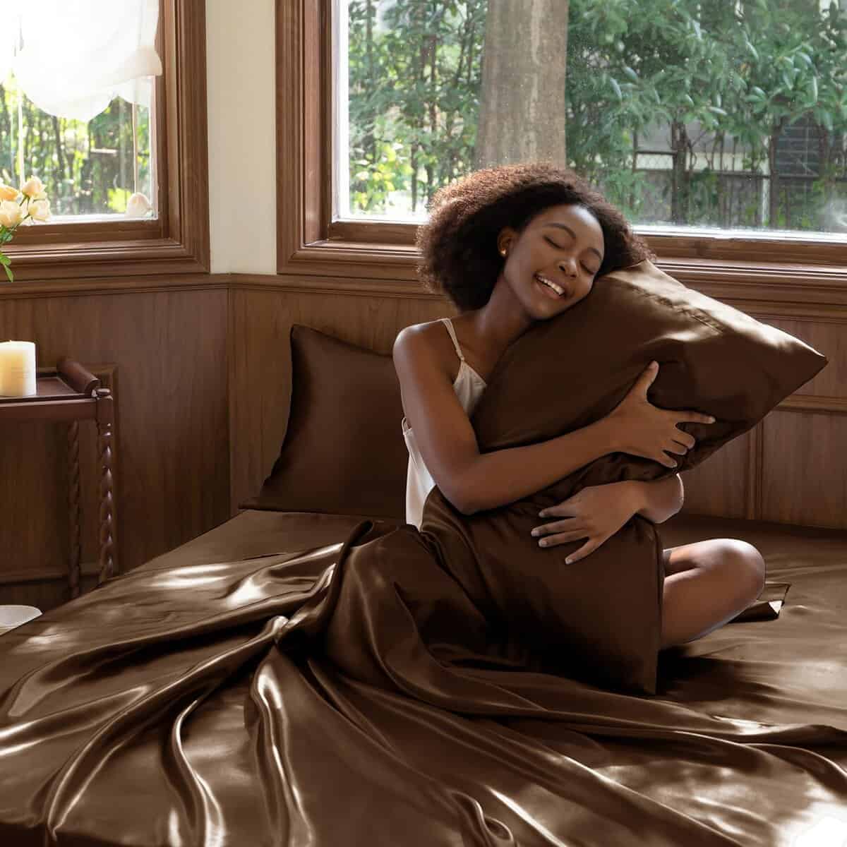 Juego de Sábanas de Satén CozyLux King Size – -Café