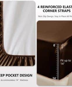 2. Estructura Duradera: El juego de sábanas está construido con un tejido más apretado, asegurando durabilidad y servicio duradero. El bolsillo elástico de ajuste profundo se estira para adaptarse a colchones de hasta 14″ de grosor con elástico alrededor de la sábana ajustable.