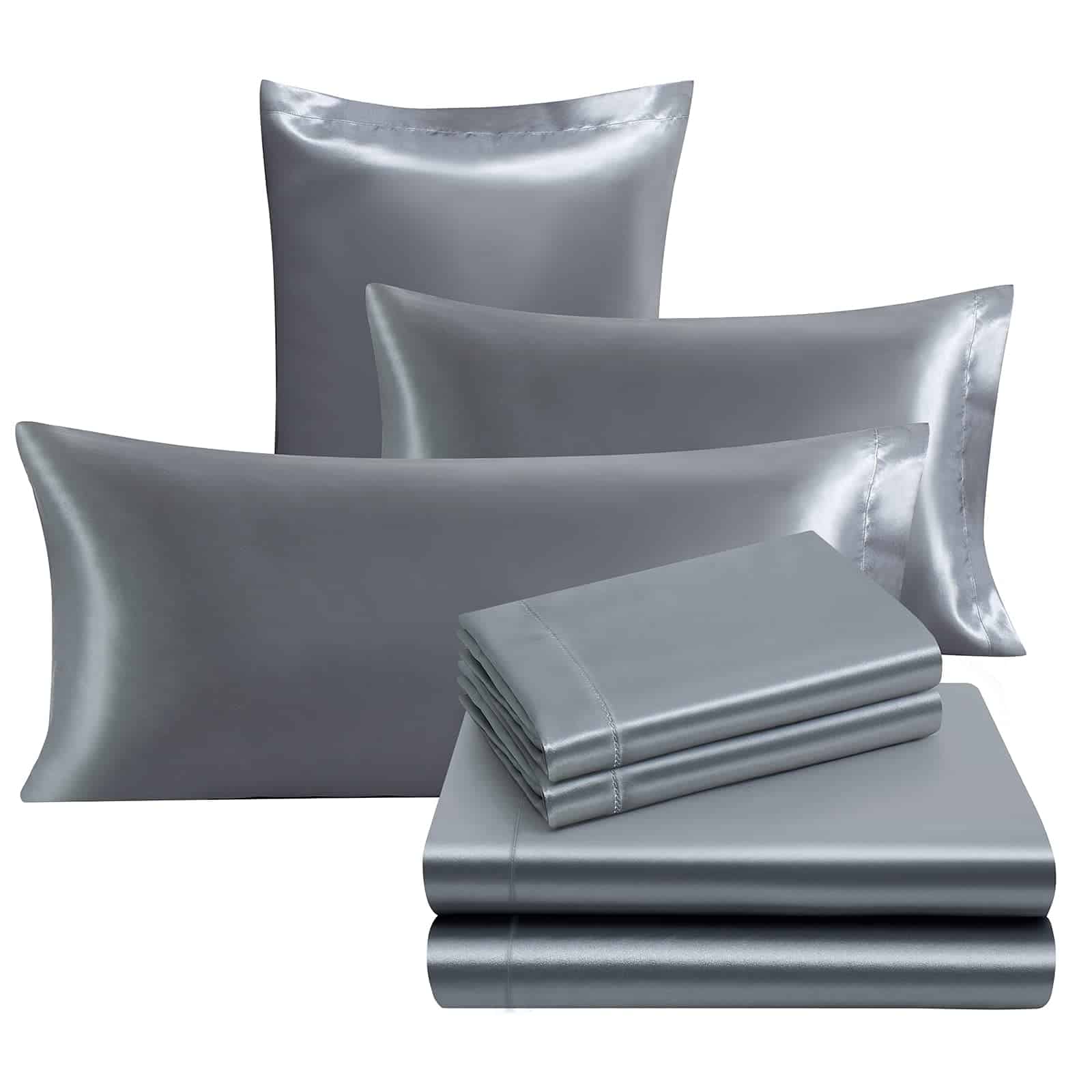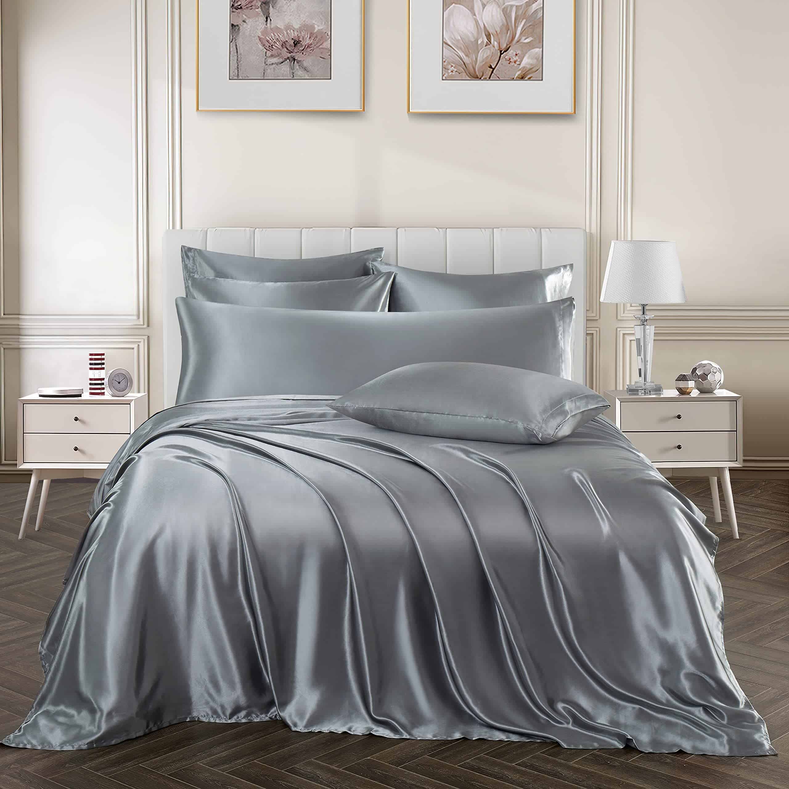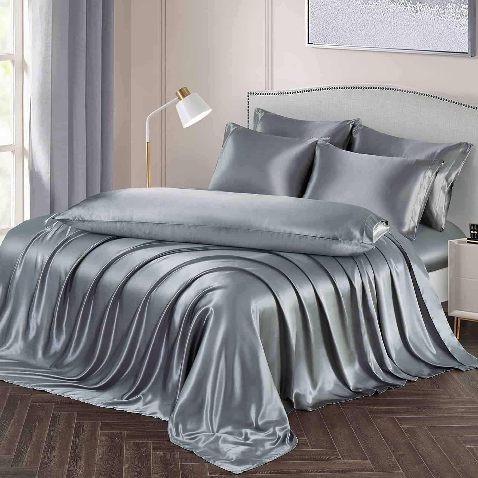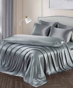 Juego de Sábanas de Satén Ersmak de 7 Piezas -Gris