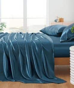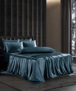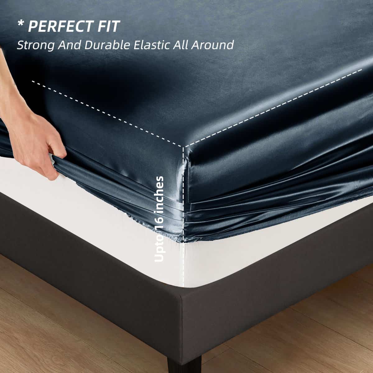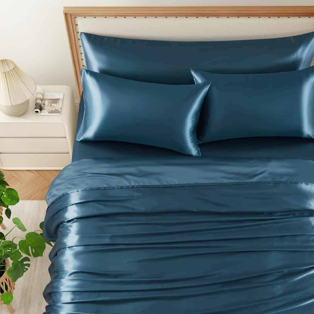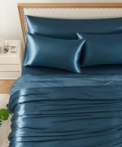 Juego de Sábanas de Satén HommxJF 5 Piezas Azul Profundo