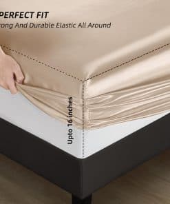 Sábana de Satén Queen: 1 Sábana Plana: 90″ x 102″; 1 Sábana Ajustable: 60″ x 80″ ; 2 Fundas de Almohada: 20″ x 30″;1 Funda de Almohada de Cuerpo 20″ x 54″