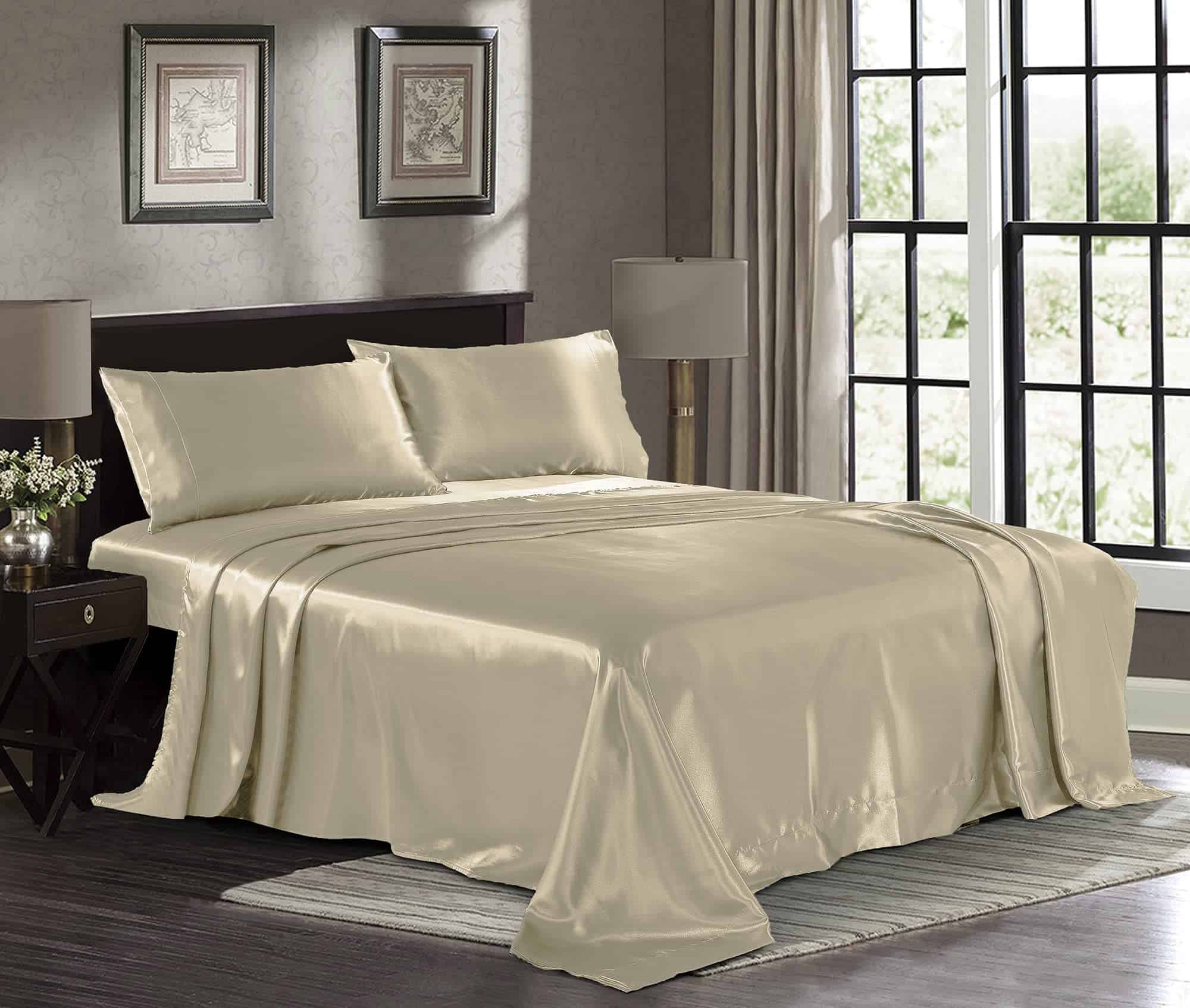 Juego de sábanas de satén King [4 piezas, champagne gold] –