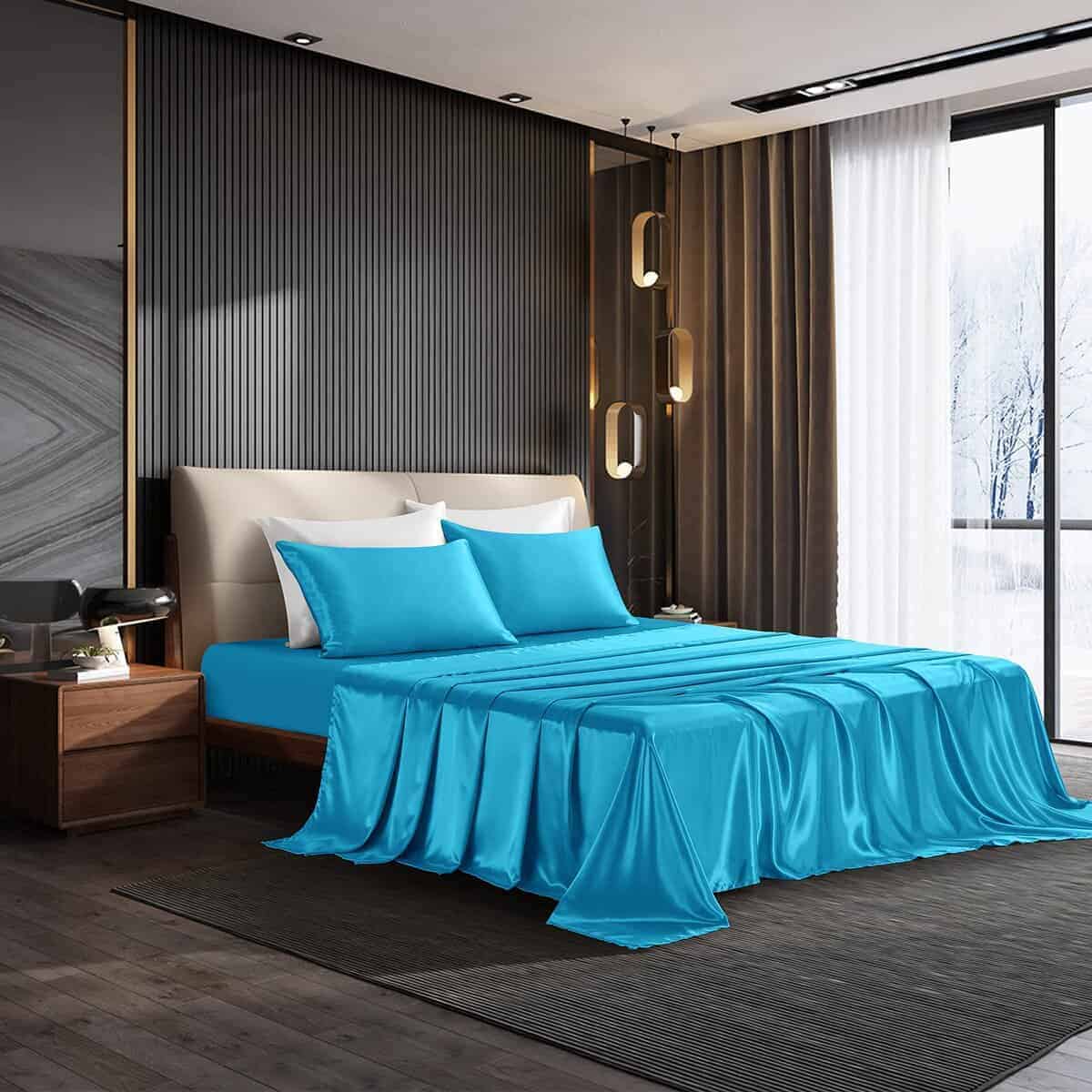 Juego de Sábanas de Satén Lake Blue Tamaño King