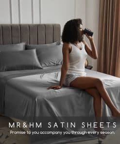 4. Lujo asequible: En comparación con las sábanas de seda, el tejido de satén es más duradero. La seda es fácil de dibujar y se pilla, y nuestro tejido de satén utiliza un conteo más alto para reducir significativamente la posibilidad de pilling. Las fibras sedosas son excelentes para regular la temperatura, transpirables y no sofocantes. Las sábanas de satén MR&HM son de alta calidad y extravagantes, que son de lujo a un precio asequible.