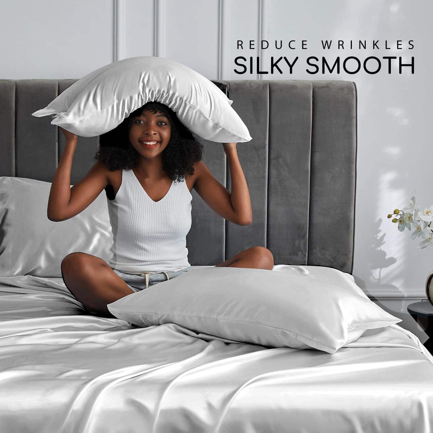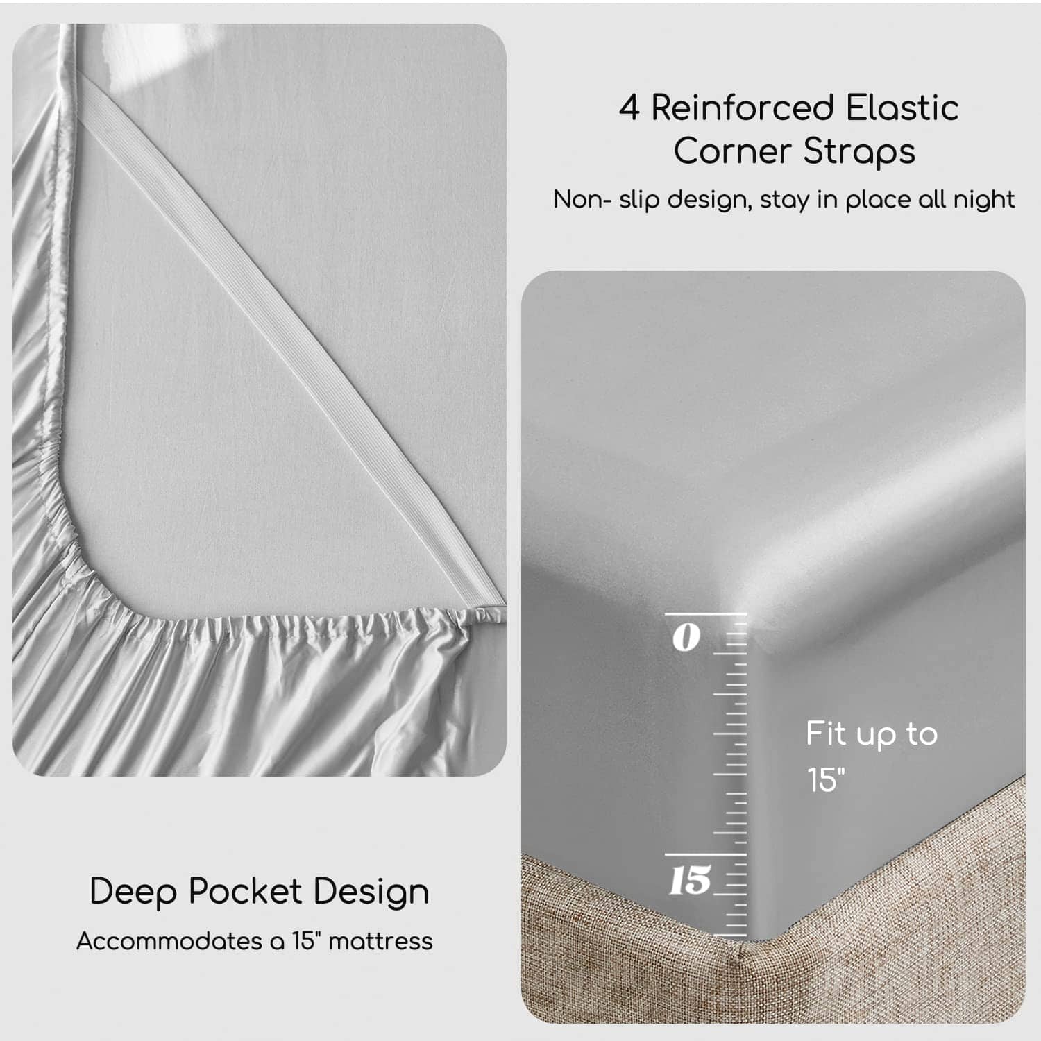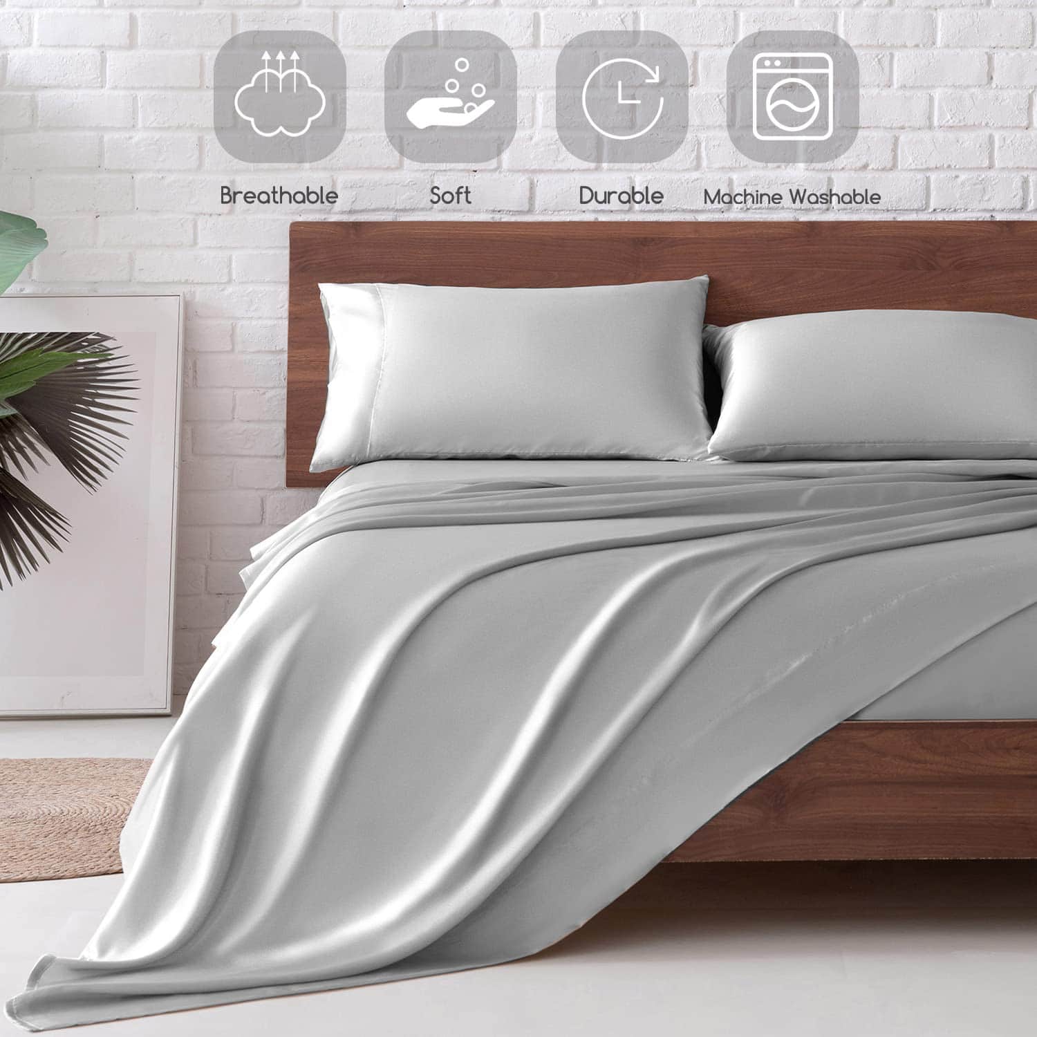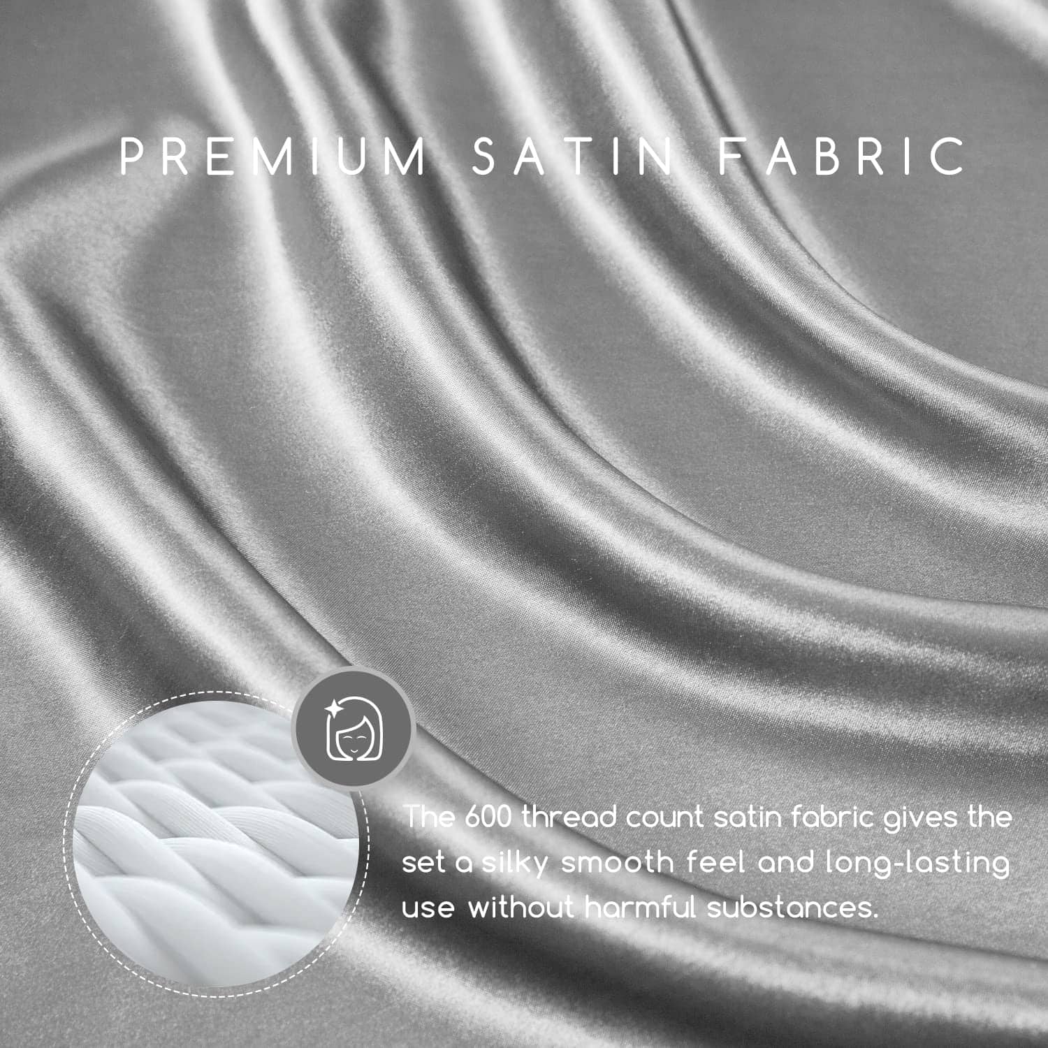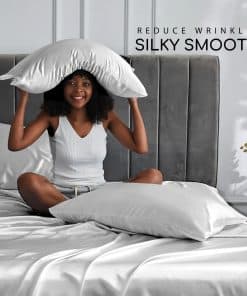 Juego de Sábanas de Satén MR&HM, Set de -Gris Plateado