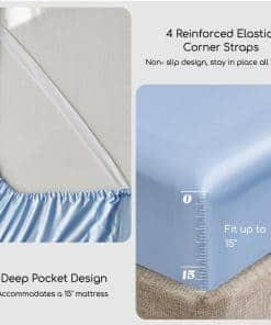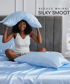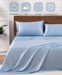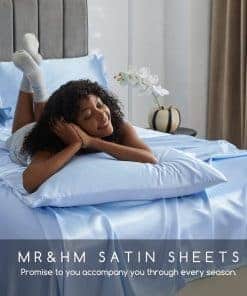 Juego de sábanas de satén MR&HM, tamaño -Azul Claro