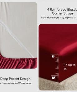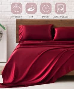Juego de Sábanas de Satén MR&HM, Tamaño -Borgoña