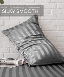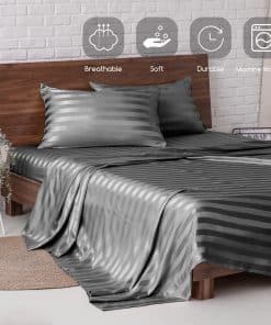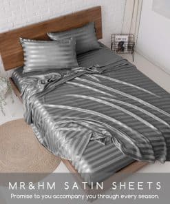 Juego de Sábanas de Satén MR&HM, Tamaño -Gris Oscuro a Rayas