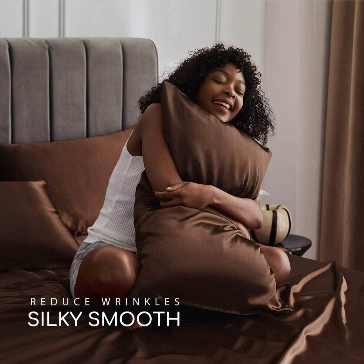 Juego de Sábanas de Satén MR&HM, tamaño -Marrón