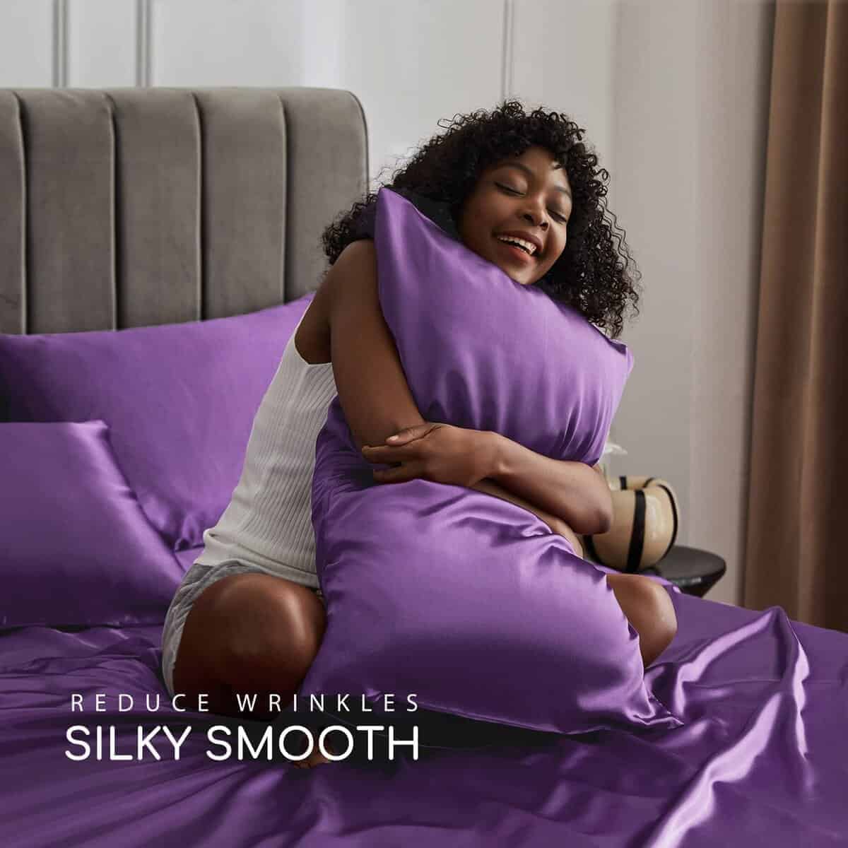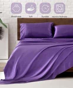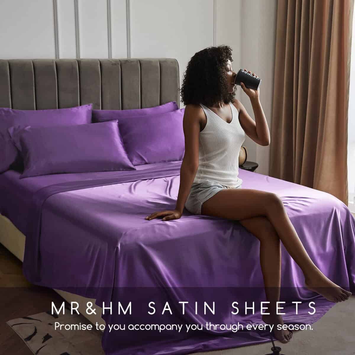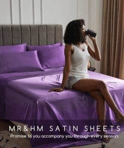 Juego de sábanas de satén MR&HM, tamaño Queen, juego de 4