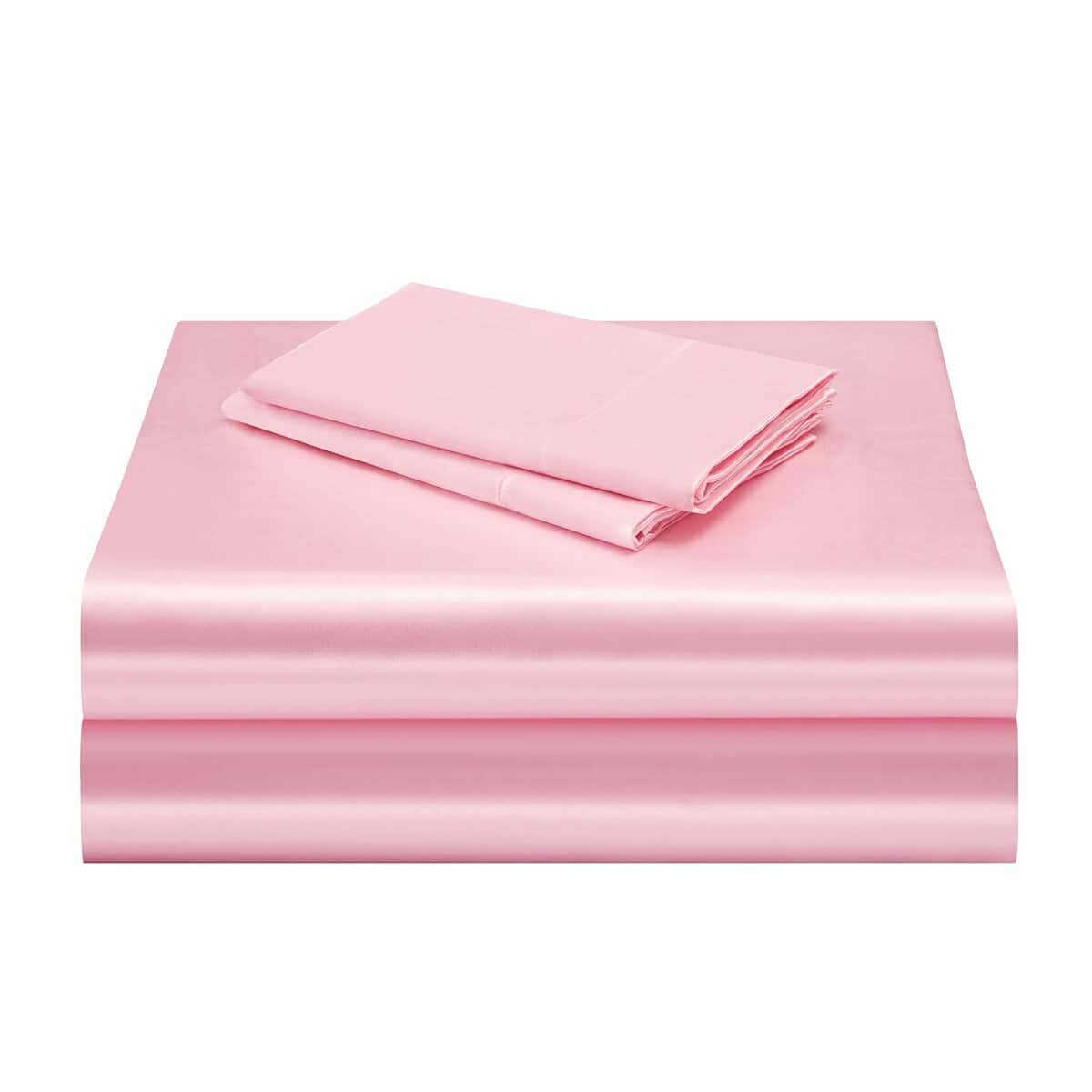Juego de Sábanas de Satén Rosa HommxJF 4 Piezas Tamaño