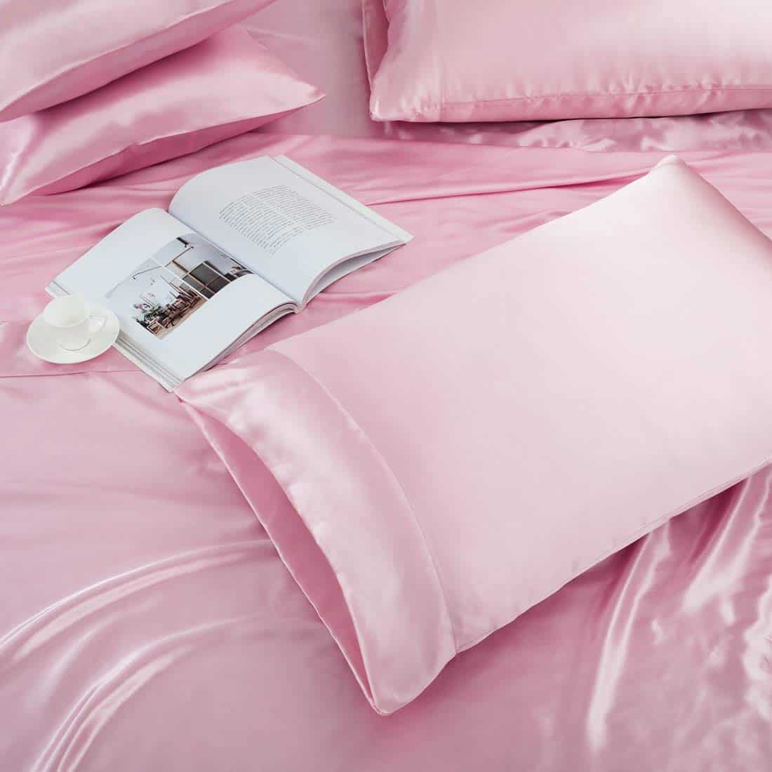 Juego de Sábanas de Satén Rosa TREELY de 6 Piezas Tamaño