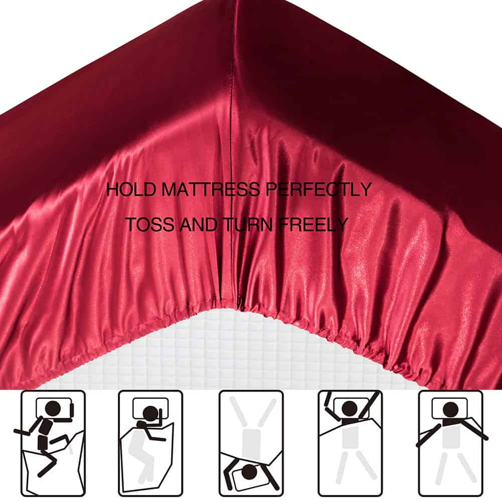 5. ¡FÁCIL DE CUIDAR: ¿Preocupado por instrucciones de lavado complejas? Nuestro juego de sábanas de satén es fácil de cuidar – simplemente mételo en la lavadora en agua tibia sin lejía, y sécalo a baja temperatura. ¡Voilà! Sábanas frescas y limpias, listas para otra noche de dulces sueños.