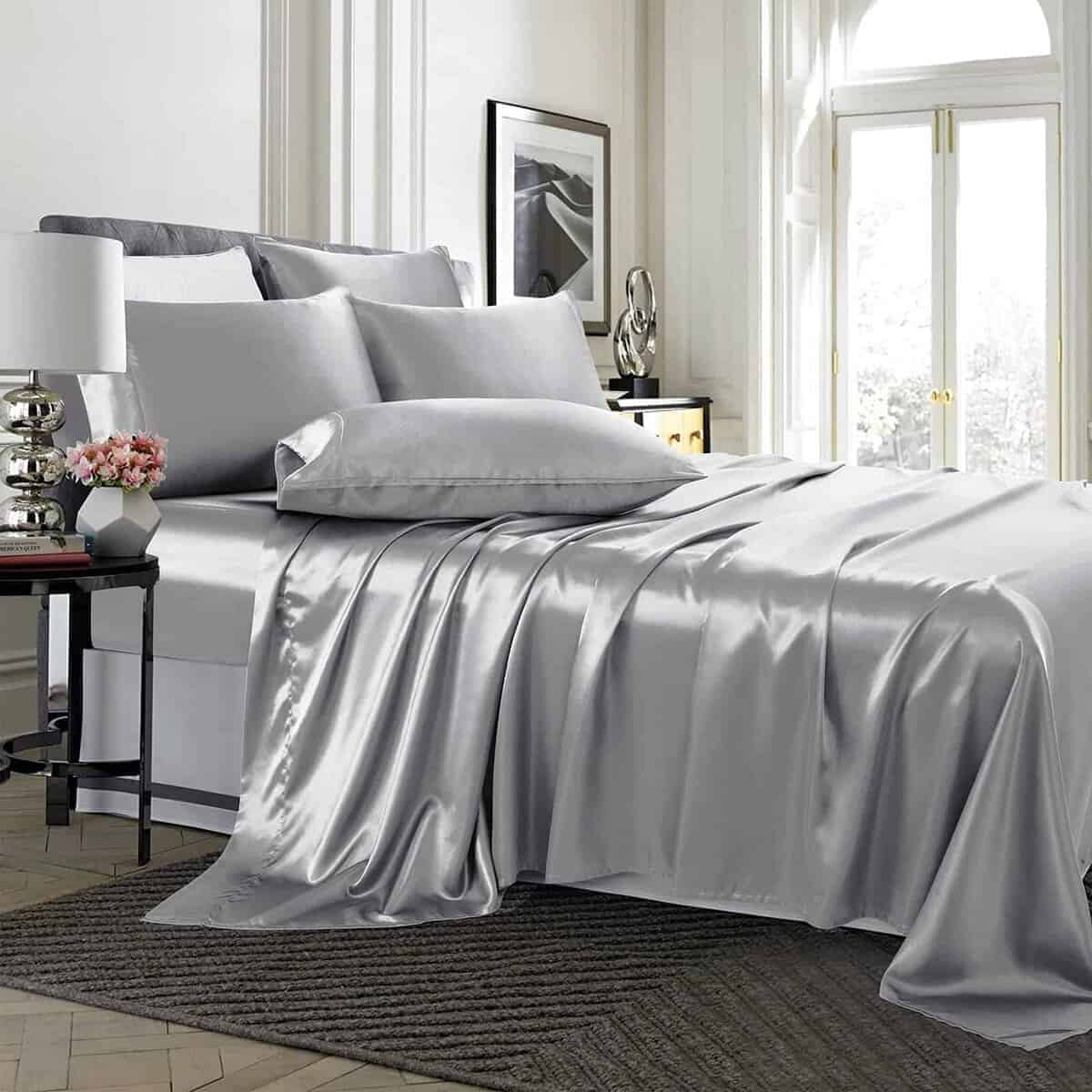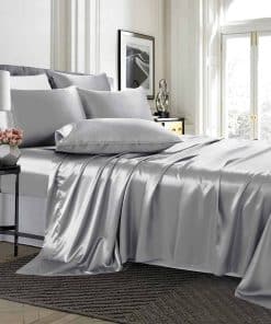 1. Misterio de proteger el cabello y la piel de belleza: ¿Te despiertas con un cabello loco? Las sábanas de satén en gris plateado son suaves y suaves como la seda. Evita que la fricción en tu cabello cause quiebres y enredos. Dormir en juegos de sábanas de satín suave y sedoso puede reducir las arrugas en la piel y mantenerla suave e hidratada para embellecer tu rostro. ¡El juego de sábanas de satén TREELY te sorprenderá y te enamorarás de él!.