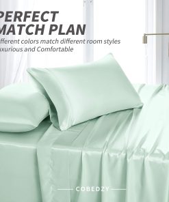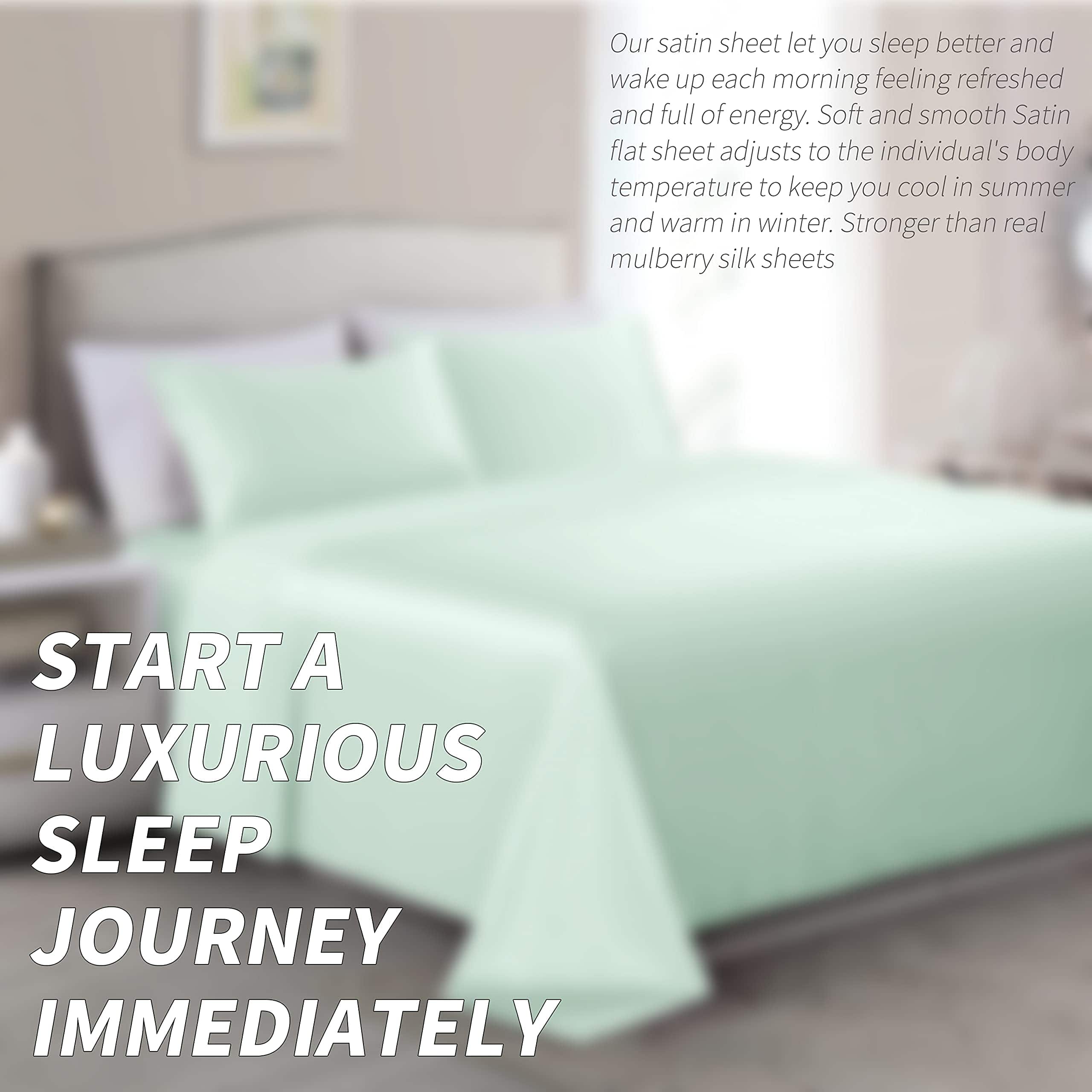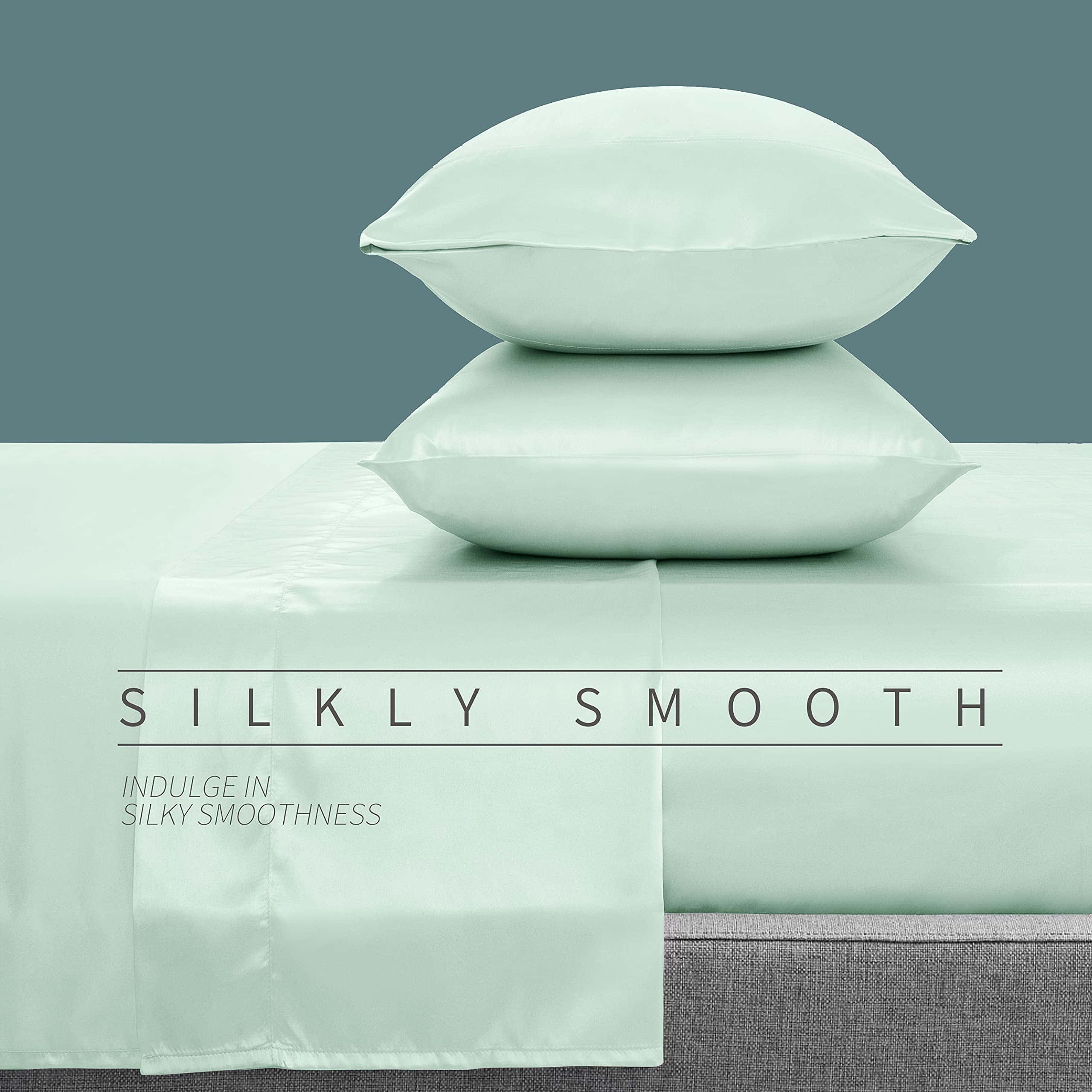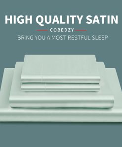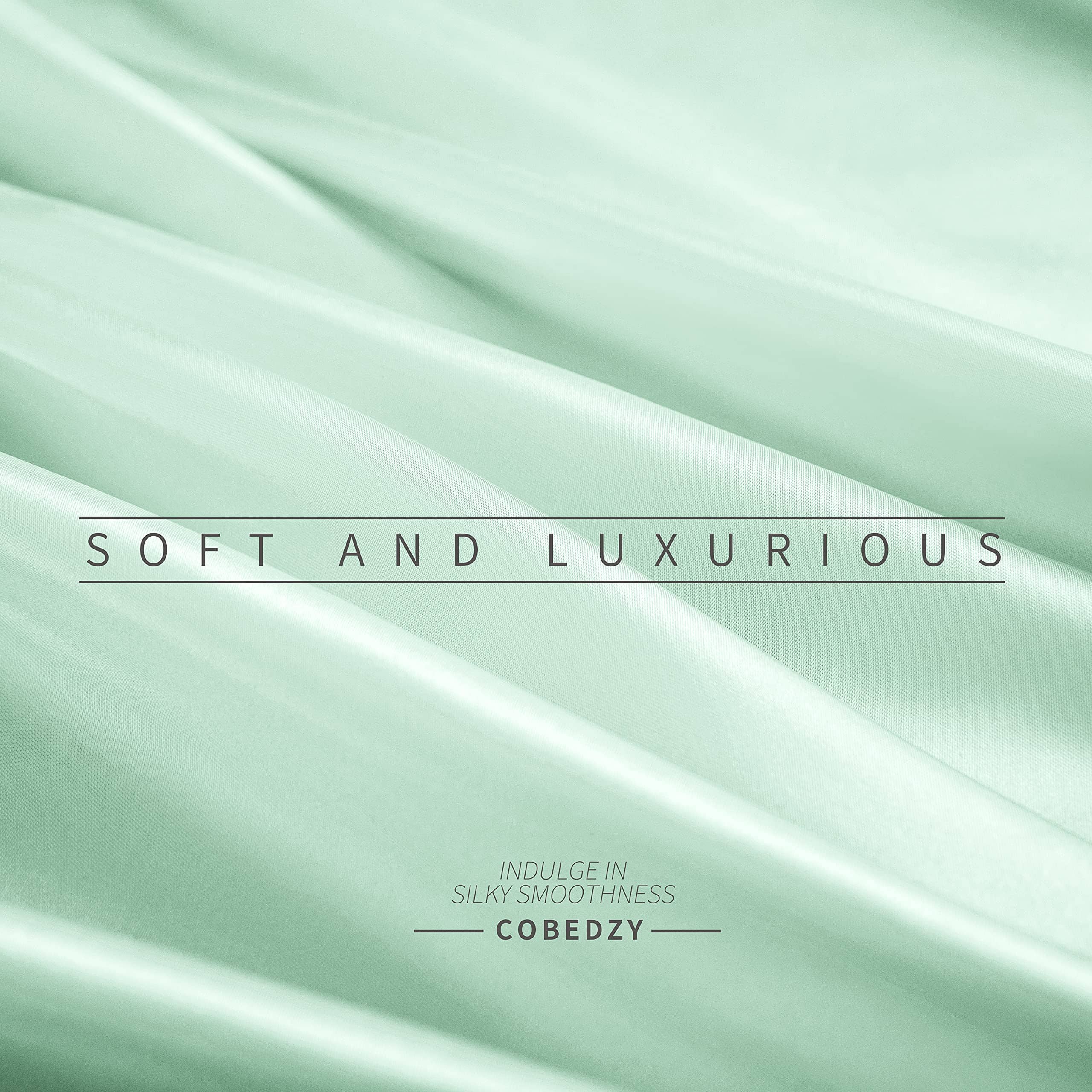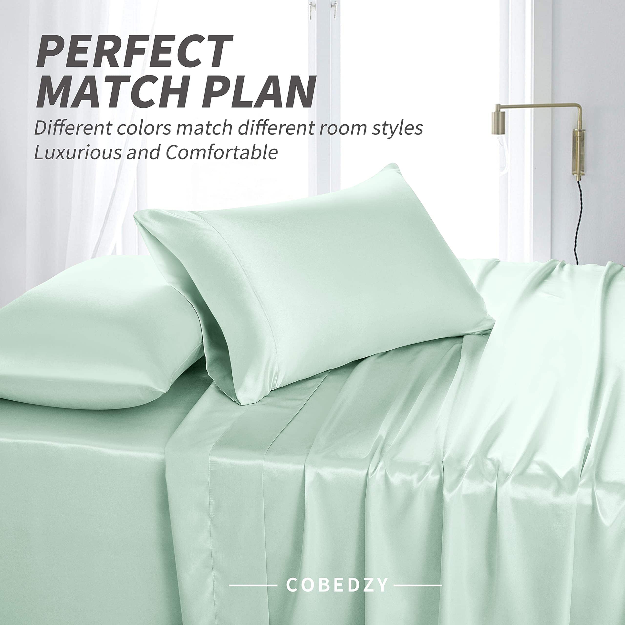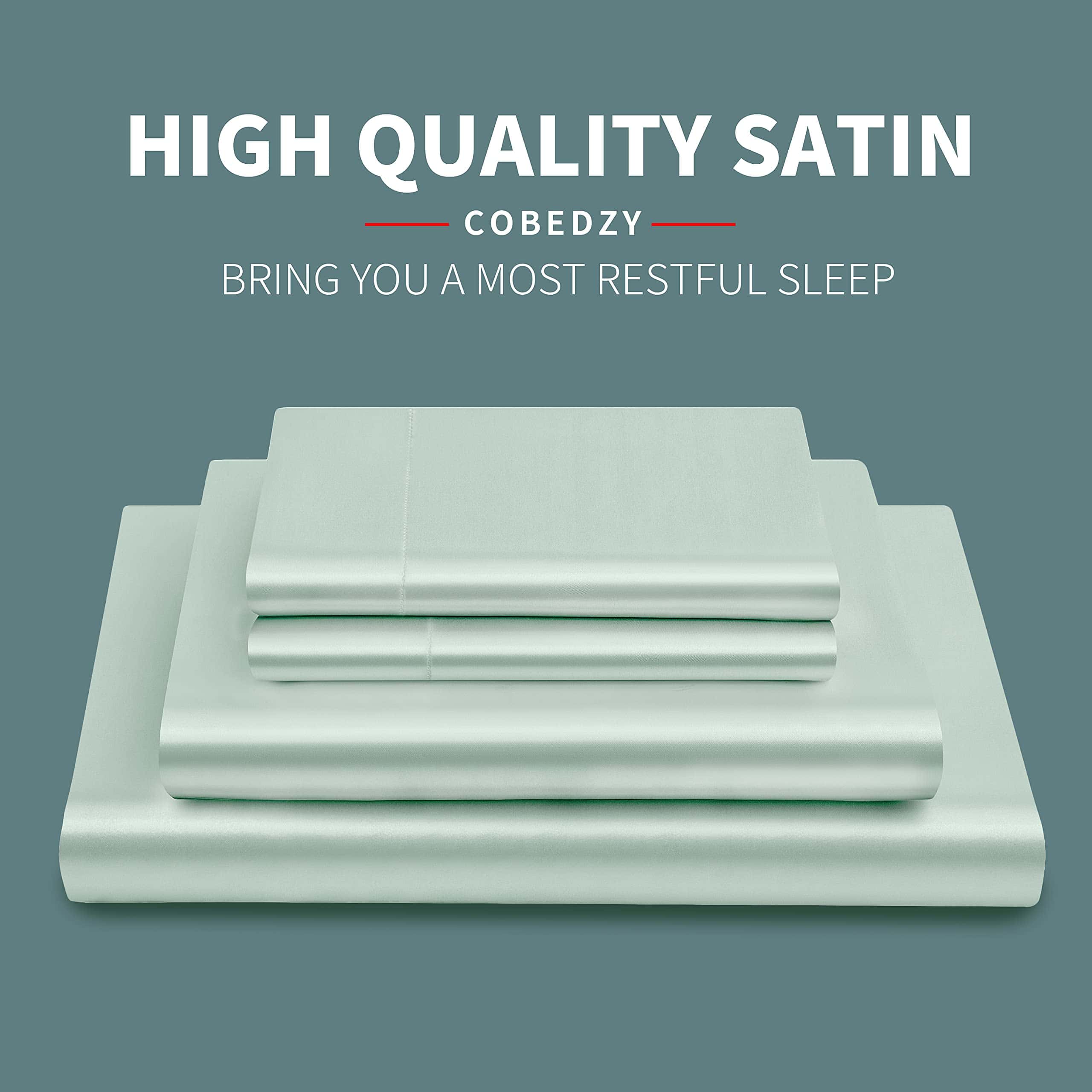 Juego de Sábanas de Satén Verde Menta King Size Cobedzy con