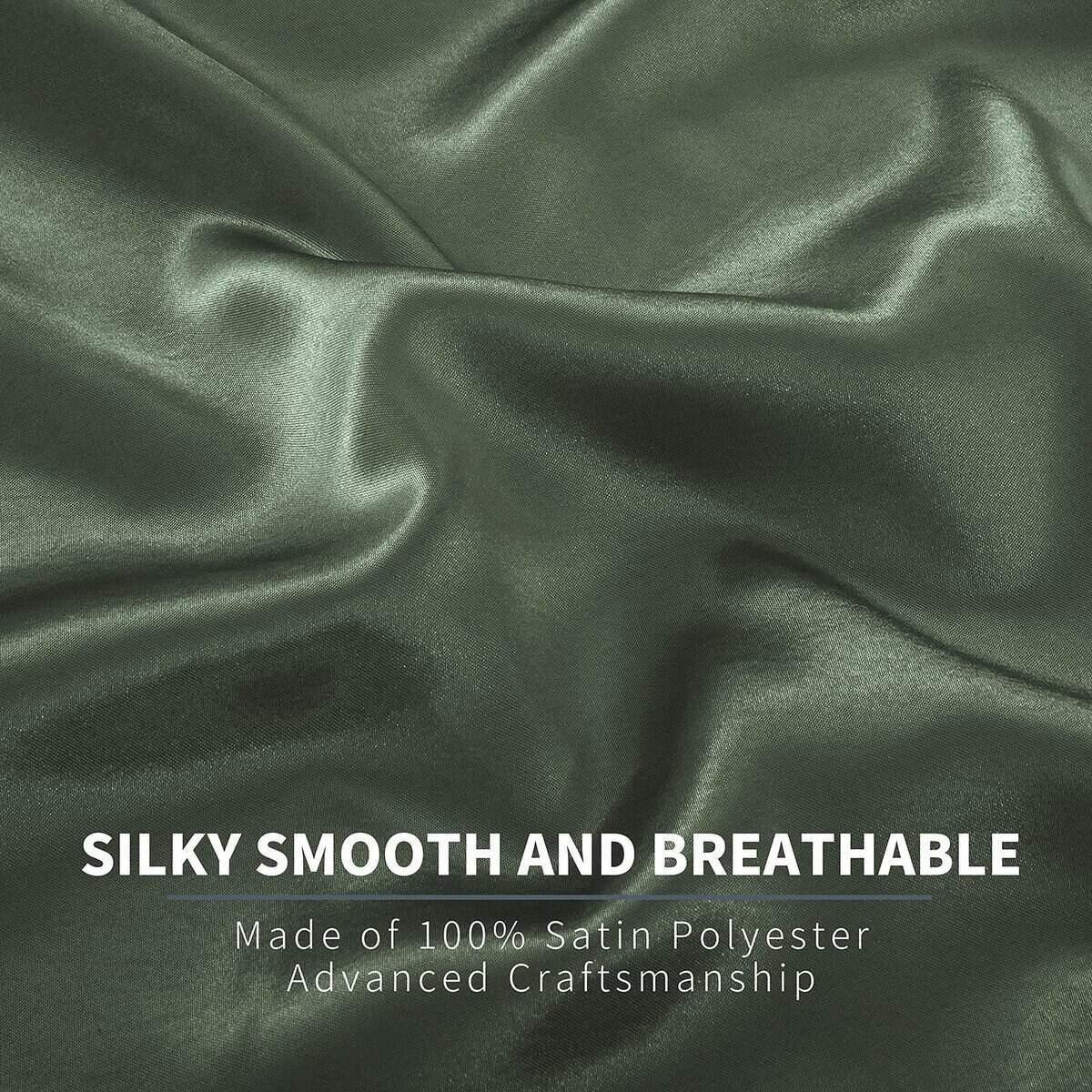 Disfrute de un sueño confortable con los juegos de cama de lujo P Pothuiny. Nuestro juego de sábanas de satín está hecho de 100% poliéster (tela de satín), suave como la seda, suave, transpirable y amigable con la piel sensible. Las sábanas de satín proporcionan un brillo lustroso y una textura suave como en un hotel de lujo de 5 estrellas. Además, son fáciles de cuidar: lavar a máquina en frío, ciclo suave, secar a baja temperatura. Si su piel es sensible, se recomienda lavarlas antes de usarlas. ¡Compra sin riesgo en P Pothuiny, ya que ofrecemos un reembolso o reemplazo dentro de 30 días si no está satisfecho con el producto!