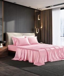 Juego de sábanas de satín rosa de HommxJF de 4 piezas