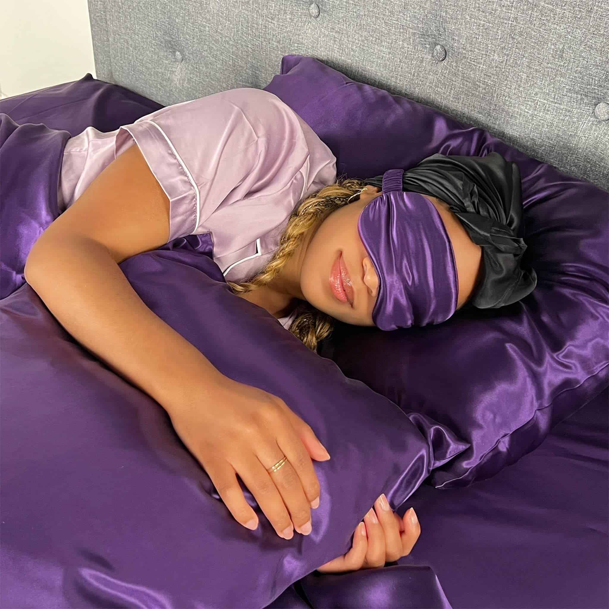 3. Promueve una piel y cabello saludables: Mejora tu rutina de belleza con nuestros juegos de sábanas de seda de 22 Momme. Conocida por prevenir la rotura y enredos del cabello, la seda también mantiene naturalmente la humedad natural de tu piel, promoviendo una tez hidratada y saludable.