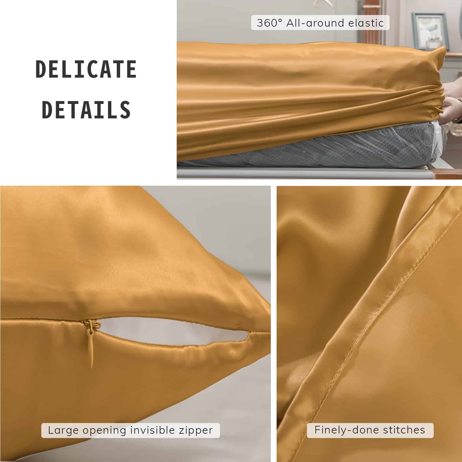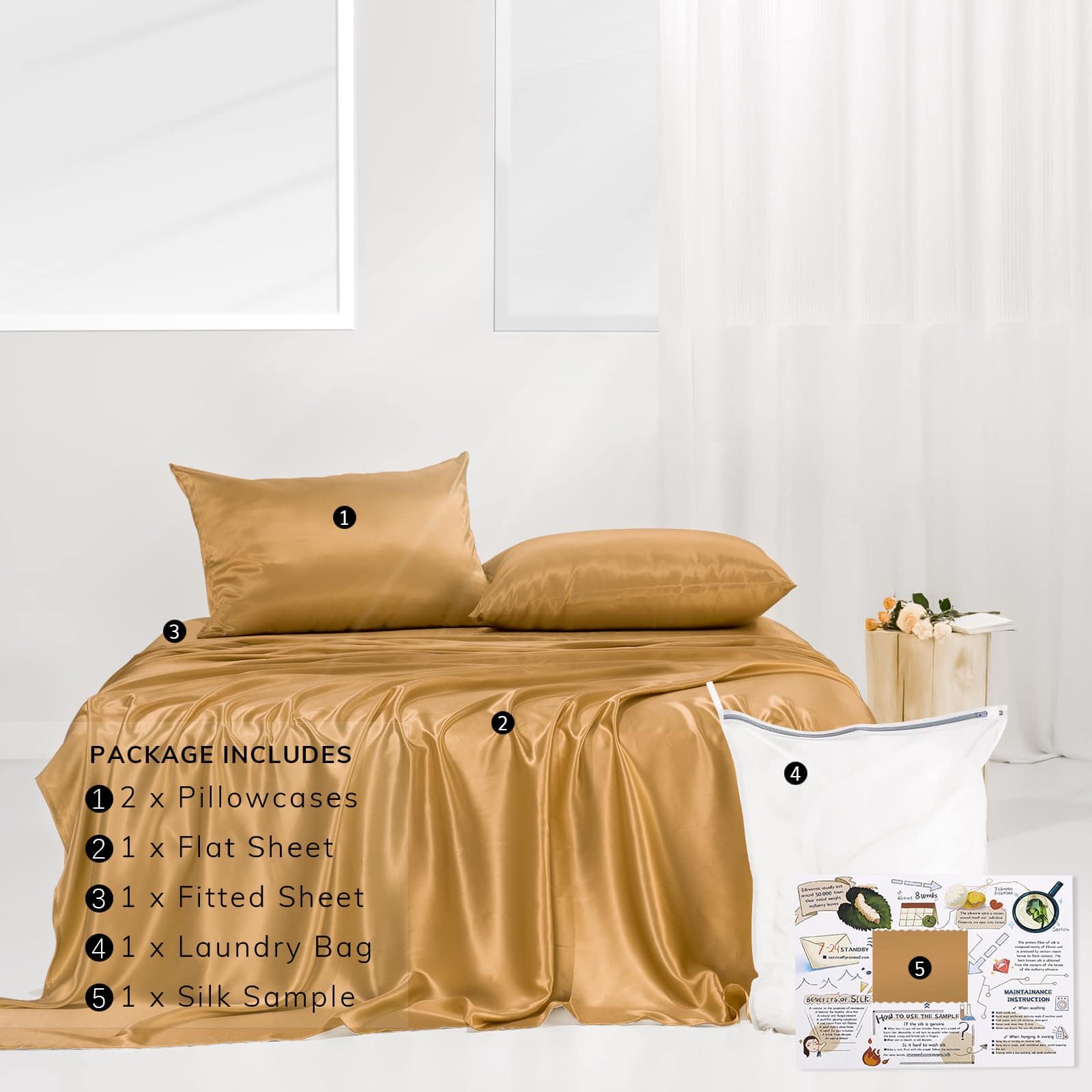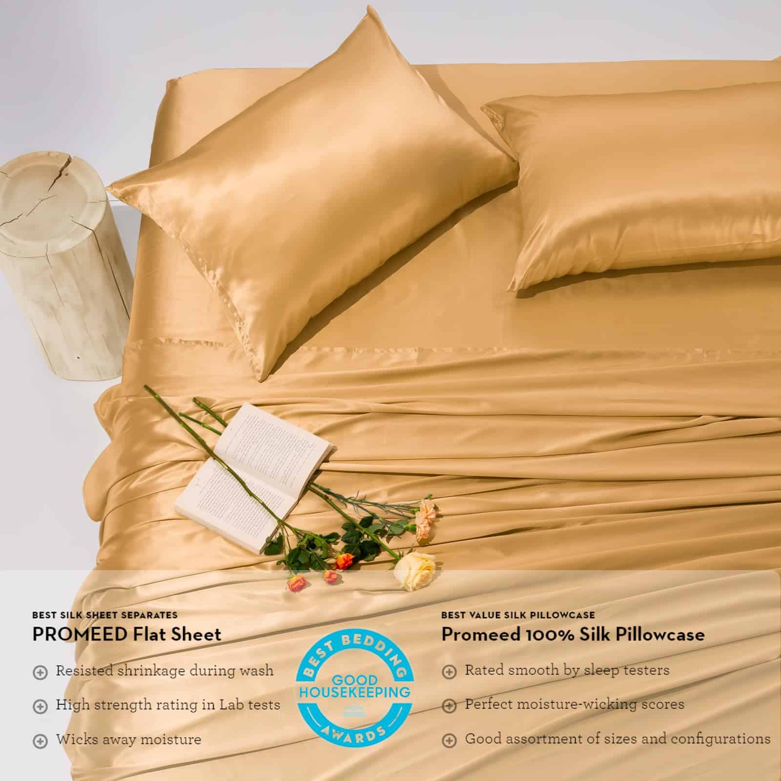 Juego de sábanas de seda 100% Promeed con 23 momme de seda