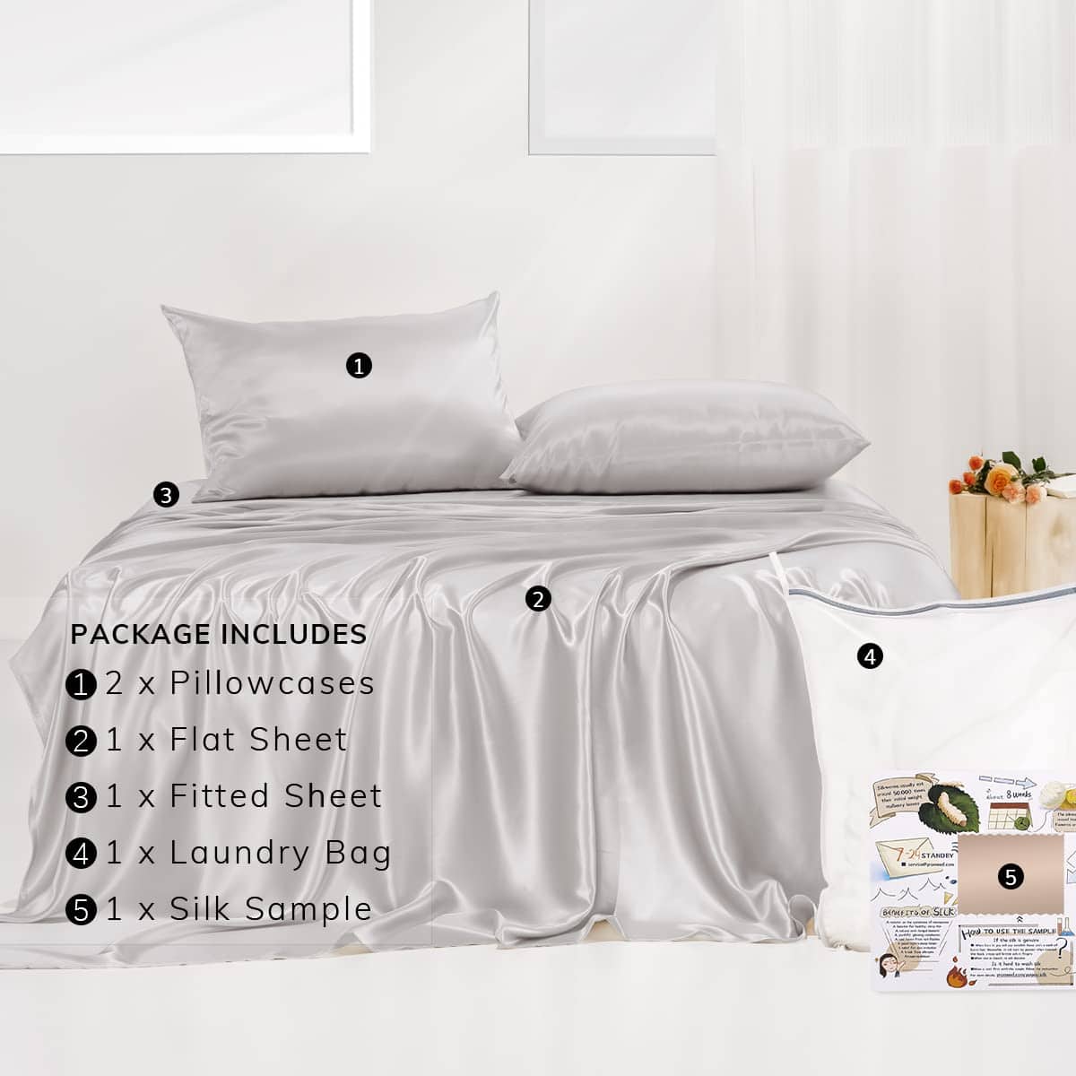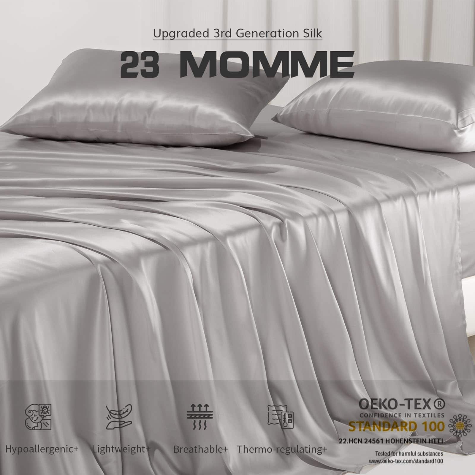 Juego de sábanas de seda 100% pura de mora PROMEED Queen