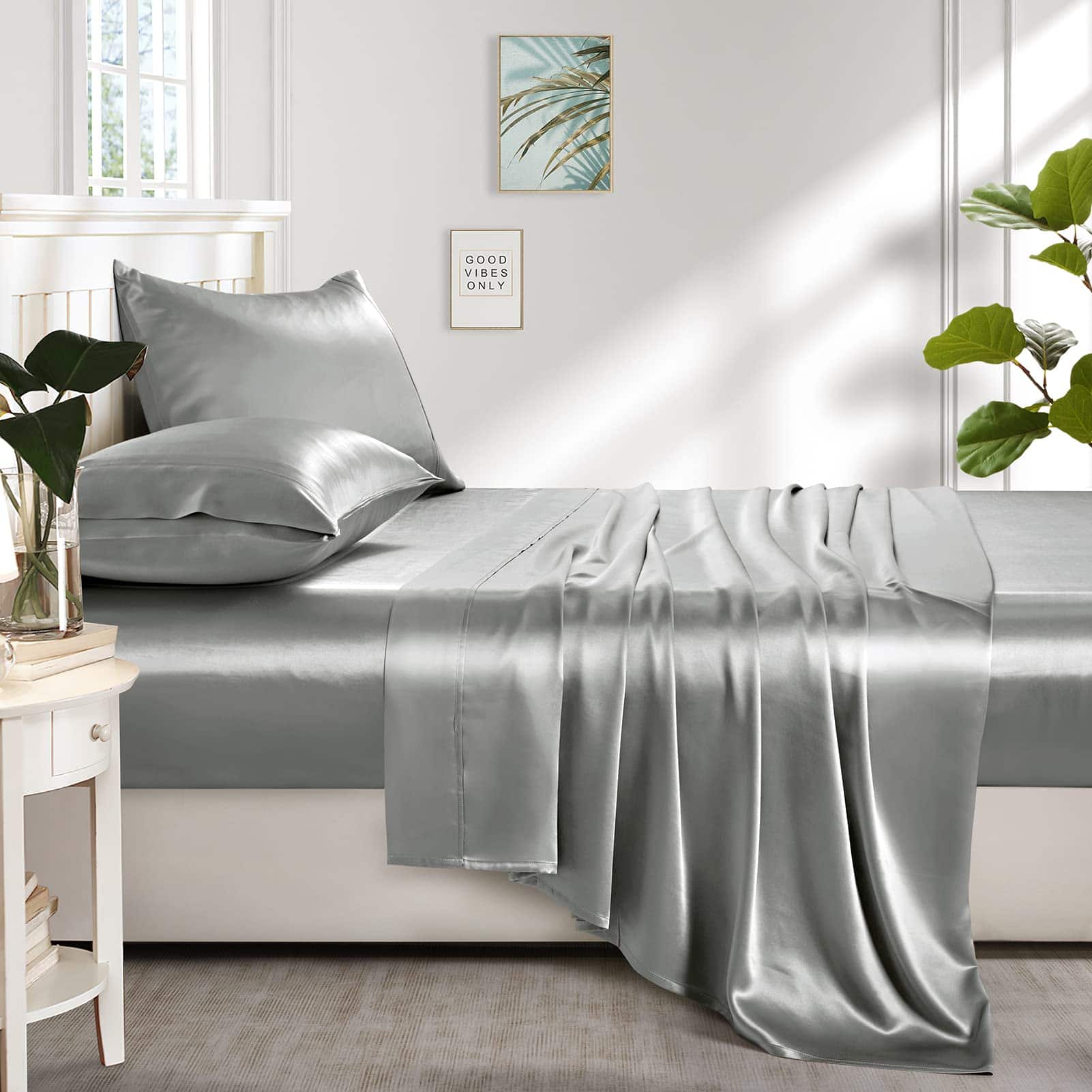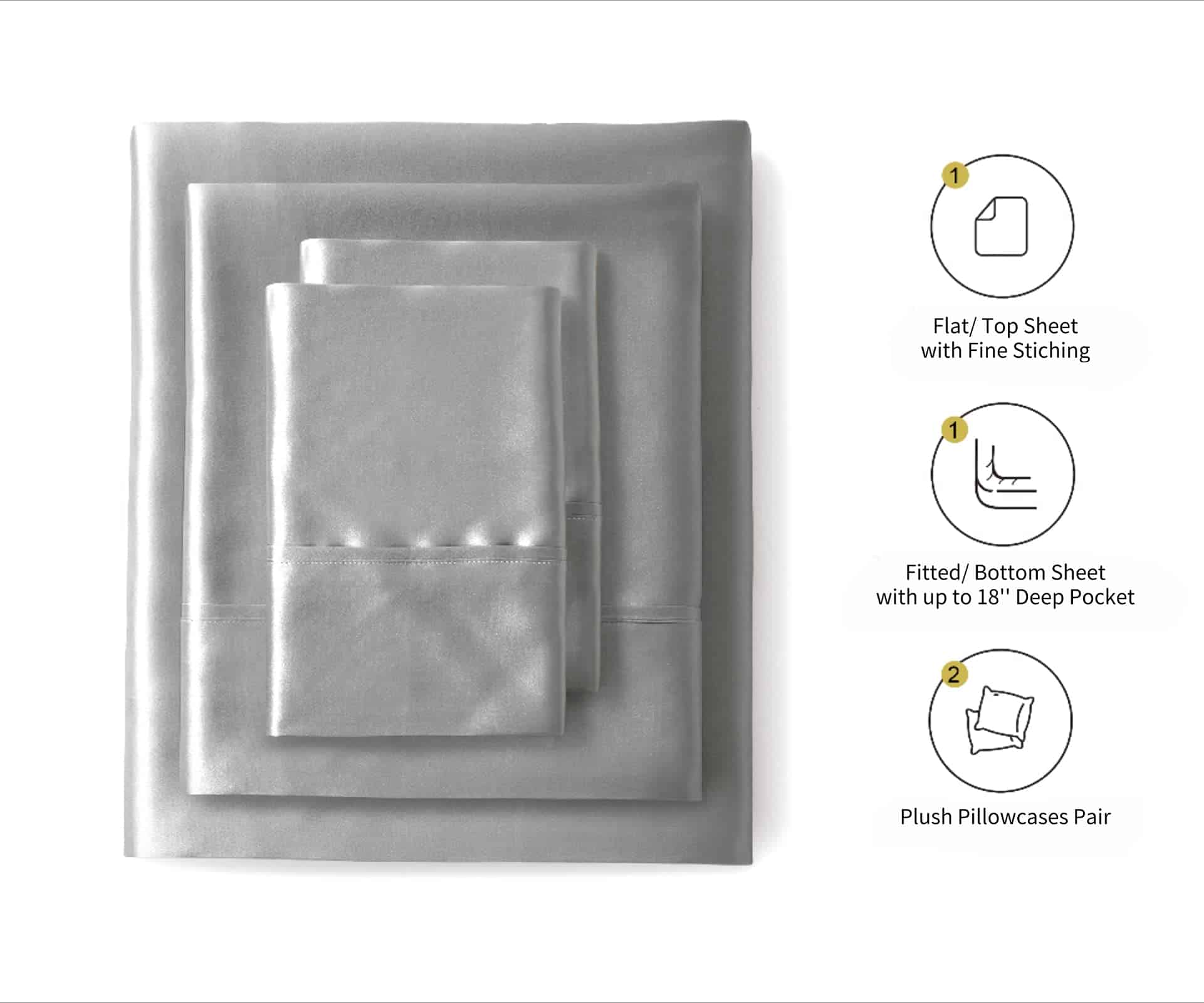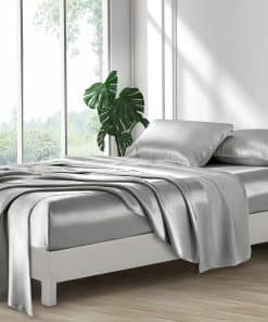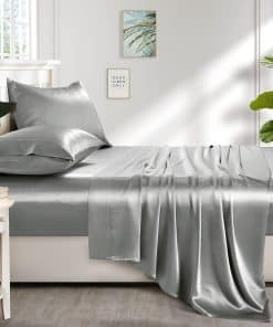 Juego de Sábanas de Seda de Satén Lanest -Gris Claro