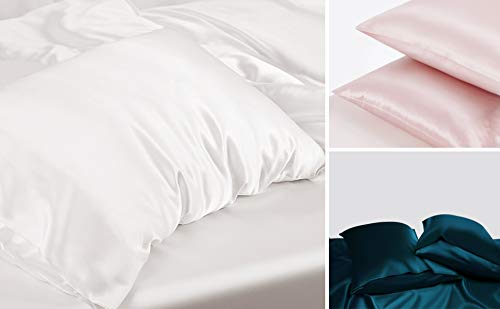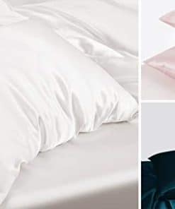 1. Calidad Premium – El juego de sábanas de seda incluye: 1 sábana ajustable de seda (Tamaño King 76 x 80 x 15), 1 sábana plana (Tamaño King 102 x 108) y 2 fundas de almohada de seda satén (20 x 40). Hecho con la mejor seda de satén de alta calidad, la sábana ajustable de seda cuenta con un borde elástico continuo seguro que sujeta firmemente la sábana en el colchón, y está generosamente diseñado para adaptarse a colchones de hasta 15 pulgadas de profundidad. Lavar a máquina en agua fría. Secar en secadora a baja temperatura. No usar lejía.