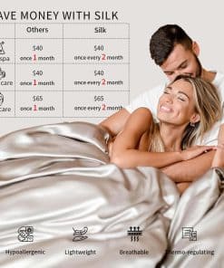 Las fibras de seda de morera son conocidas por ser suaves, refrescantes y no absorbentes, lo que las hace ultra transpirables y previenen los brotes y arrugas del sueño. Estas sábanas de seda también son recomendadas por expertos en belleza y salud para un cabello sin frizz y una piel hidratada, gracias a su capacidad para mantener los aceites naturales durante el sueño.