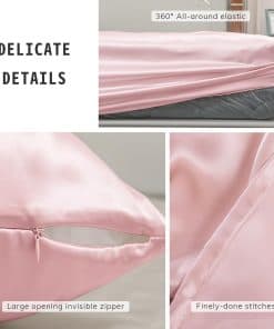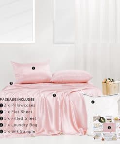 El juego de sábanas de seda Promeed mejorado de 23 mommes en color rosa tamaño Queen es el complemento perfecto para tu cama. Galardonado con el Good Housekeeping Bedding Awards 2023 por su suavidad según los probadores de sueño, este juego de sábanas es ideal para aquellas personas que buscan una experiencia de sueño lujosa y reparadora. Fabricado con la más alta calidad de seda de morera de grado 6A+, este juego de sábanas es súper suave, refrescante y no absorbente, lo que lo hace ultra transpirable. Además, la seda de morera es conocida por prevenir brotes y reducir las arrugas del sueño, por lo que notarás una mejoría en la salud de tu piel y cabello. Las fibras de seda también son excelentes para regular la temperatura, lo que significa que te mantendrás fresco y seco durante toda la noche, reduciendo la sudoración excesiva y proporcionando un sueño reparador. Este juego de sábanas es fácil de cuidar, lavable a máquina en un ciclo suave, y más duradero que las sábanas comunes de seda o satén. Disfruta de un descanso óptimo con el juego de sábanas de seda Promeed de 23 mommes en tamaño Queen en color rosa.