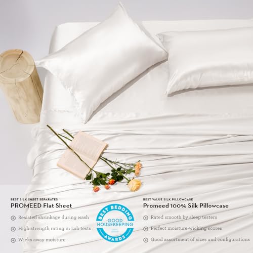 Las sábanas de seda pura 100% de morera de PROMEED han recibido el premio GOOD HOUSEKEEPING BEDDING AWARDS 2024 por su suavidad y puntuaciones perfectas de absorción de humedad. Fabricadas con seda de morera de la más alta calidad de Grado 6A+, estas sábanas de seda de 23 Momme son súper suaves, refrescantes y no absorbentes, lo que las hace ultra transpirables y evita brotes y reduce arrugas en el sueño. Recomendadas por expertos en salud y belleza, las sábanas de seda de morera de PROMEED son ideales para el cuidado del cabello sin frizz y la piel hidratada. A diferencia del algodón, el satén o las sábanas de seda común, que se enredan y secan los aceites naturales durante el sueño, las sábanas de seda natural de PROMEED son ricas en proteínas que permiten la restauración del cabello y la piel. La tela de SEDA 23 MOMME MEJORADA DE PROMEED es resistente y resistente a la contracción en las pruebas de durabilidad del laboratorio de Good Housekeeping. También resultó ser absorbente en las pruebas de gestión de la humedad, lo que significa que dormir en sábanas de seda reales ayudará a reducir la sudoración excesiva y, por lo tanto, ralentizará los sofocos no deseados. Además, estas sábanas de seda son fáciles de cuidar, ya que son lavables a máquina en ciclo suave y más duraderas que las sábanas de seda o satén comunes, manteniendo su suavidad incluso después de muchos lavados. No esperes más para experimentar la sensación de lujo y suavidad de las sábanas de seda pura 100% de morera de PROMEED.