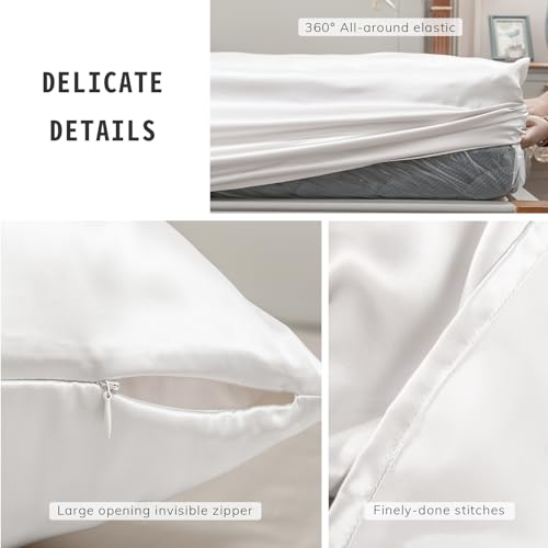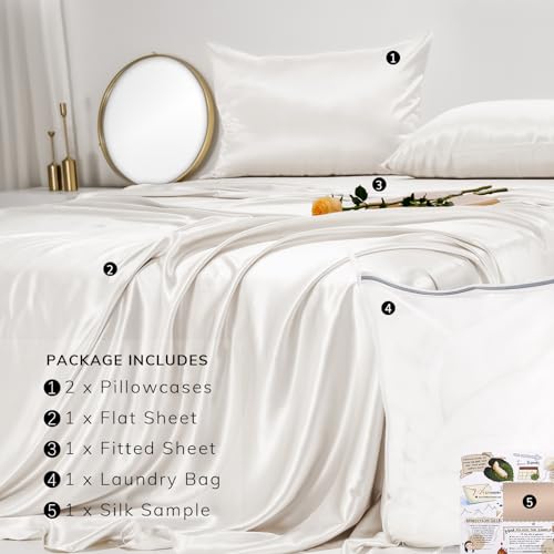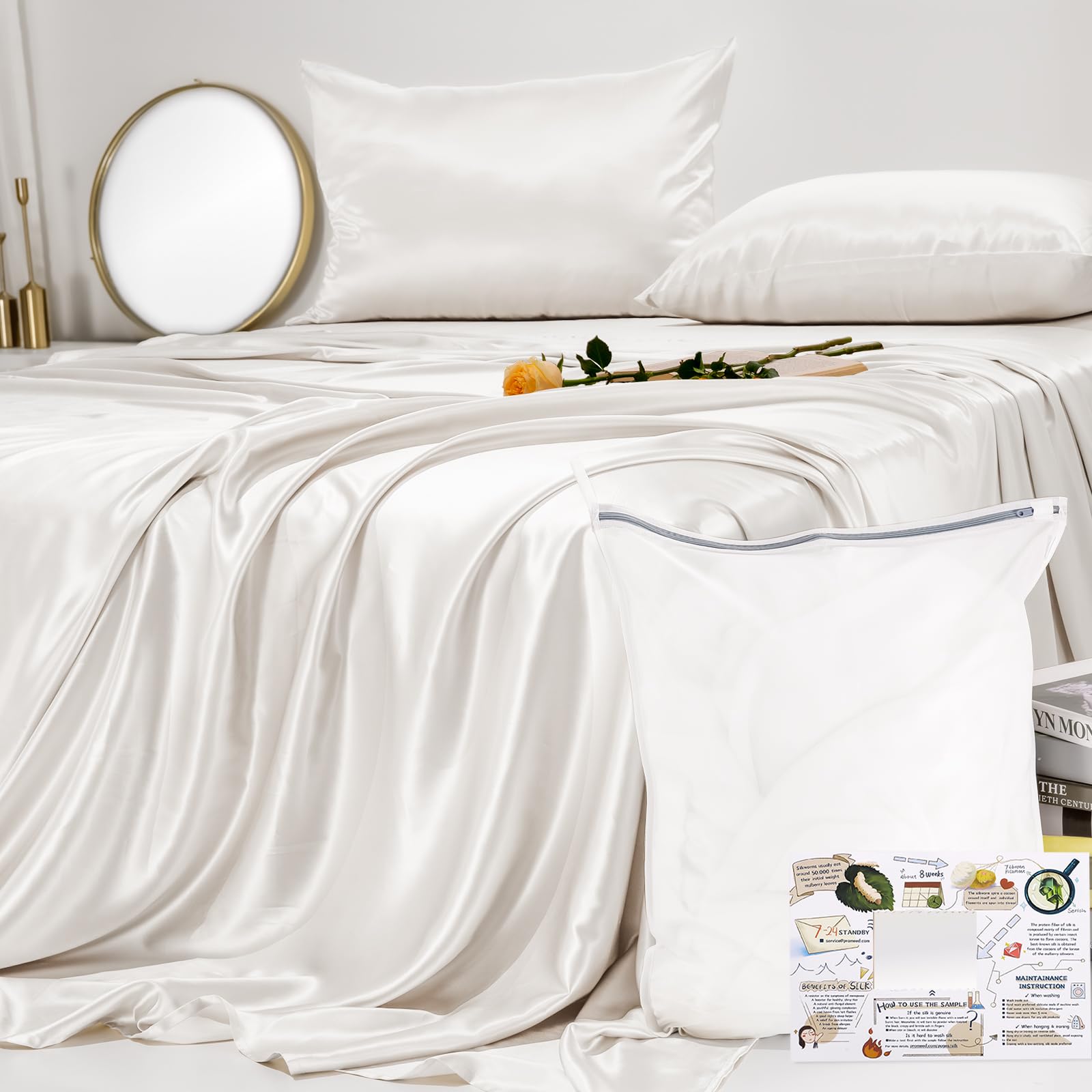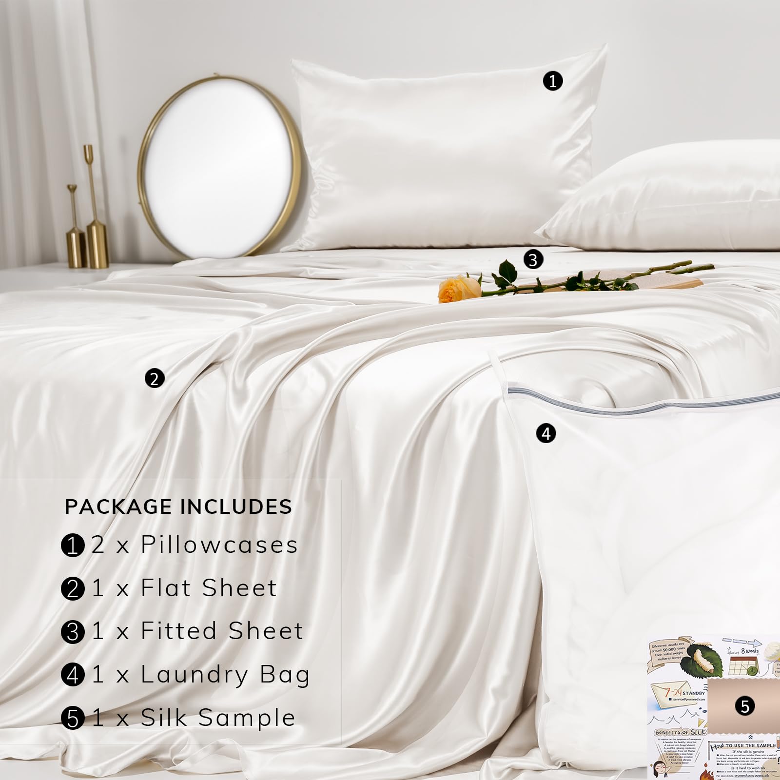 Juego de sábanas de seda pura 100% de morera blanca tamaño