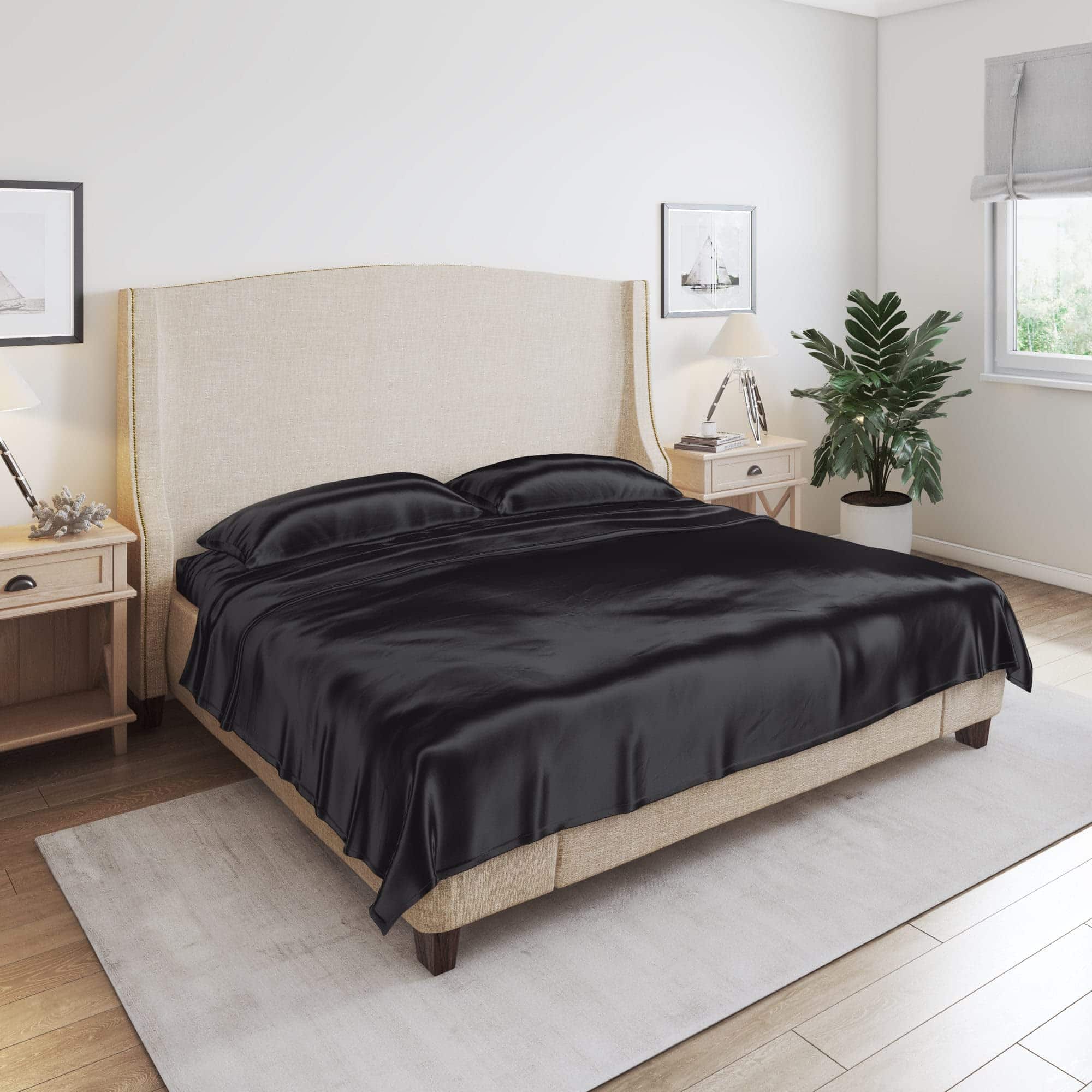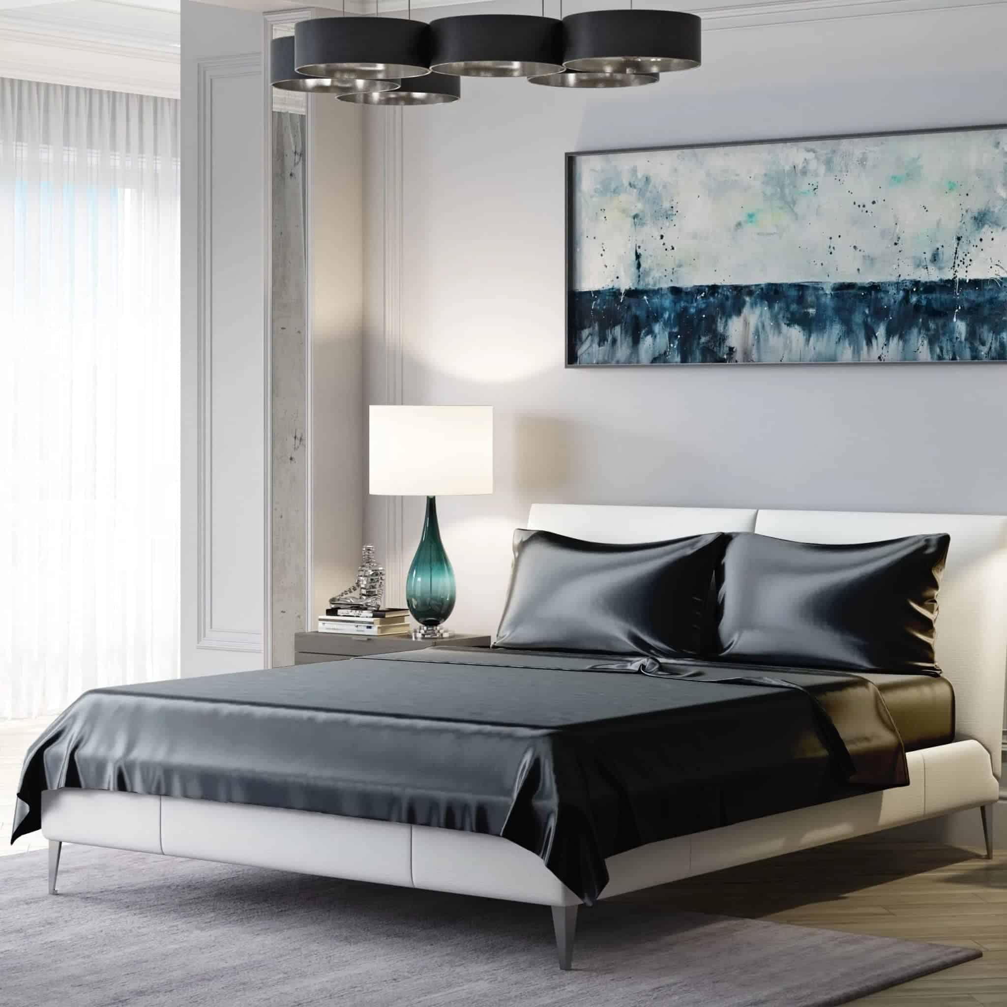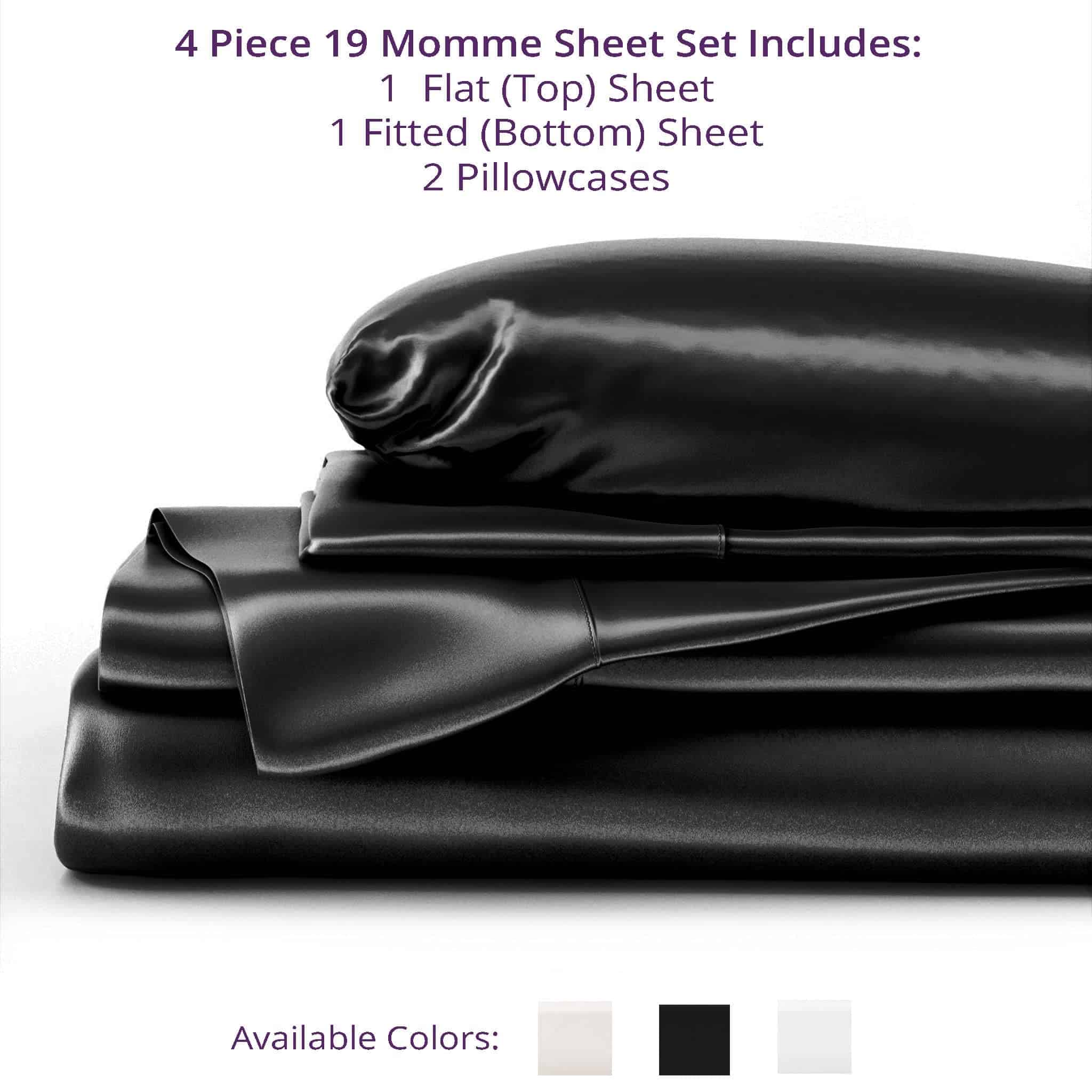 Juego de sábanas de 100% seda de morera pura de Mulberry Park de 19 momme, 4 piezas – Certificado Oeko-TEX – Negro, Queen. Nuestro juego de sábanas de seda de morera de 19 momme y 4 piezas incluye una sábana plana, una sábana ajustable y dos fundas de almohadas de seda con cierres estilo sobre. La sábana ajustable de 16″ es sin costuras y elástica en su totalidad para un ajuste ceñido en colchones de hasta 14″ de profundidad. Confeccionadas con las fibras de seda de morera más finas, nuestras sábanas de seda de prestigio ofrecen un lujo inigualable. La artesanía superior se refleja en los detalles, como el amplio borde en la cabeza de la sábana, las costuras francesas en las fundas de almohada y esquinas en las sábanas ajustables. Las fundas de almohada tienen un cierre de sobre extra profundo para mayor comodidad. Mejora tu rutina de belleza con nuestros ligeros Juegos de Sábanas de Seda de 19 Momme, conocidos por prevenir la rotura y enredos del cabello. La seda también mantiene naturalmente la humedad de tu piel, promoviendo un cutis hidratado y saludable. Nuestras sábanas de seda de morera ofrecen un sueño lujoso al regular naturalmente la temperatura corporal para un descanso mejor e ininterrumpido. El tejido de charmeuse de 19 momme permite un ambiente de sueño fresco y cómodo, ideal para los meses de verano o para aquellos que tienden a sentir calor al dormir. Mulberry Park Silks promete utilizar solo tintes seguros para el medio ambiente y todos nuestros productos están certificados por OEKO-TEX STANDARD 100 como probados para sustancias nocivas. La seda, con una historia increíble que se remonta a la antigua China, es uno de los tejidos más lujosos y apreciados del mundo. En Mulberry Park Silks, garantizamos calidad y valor superiores en todos nuestros productos.