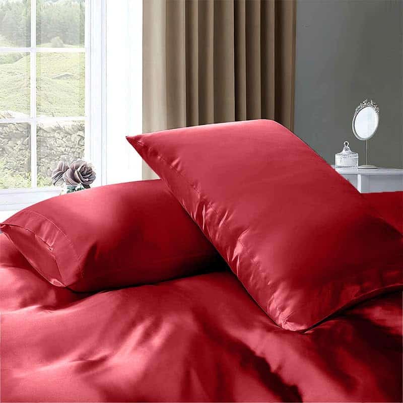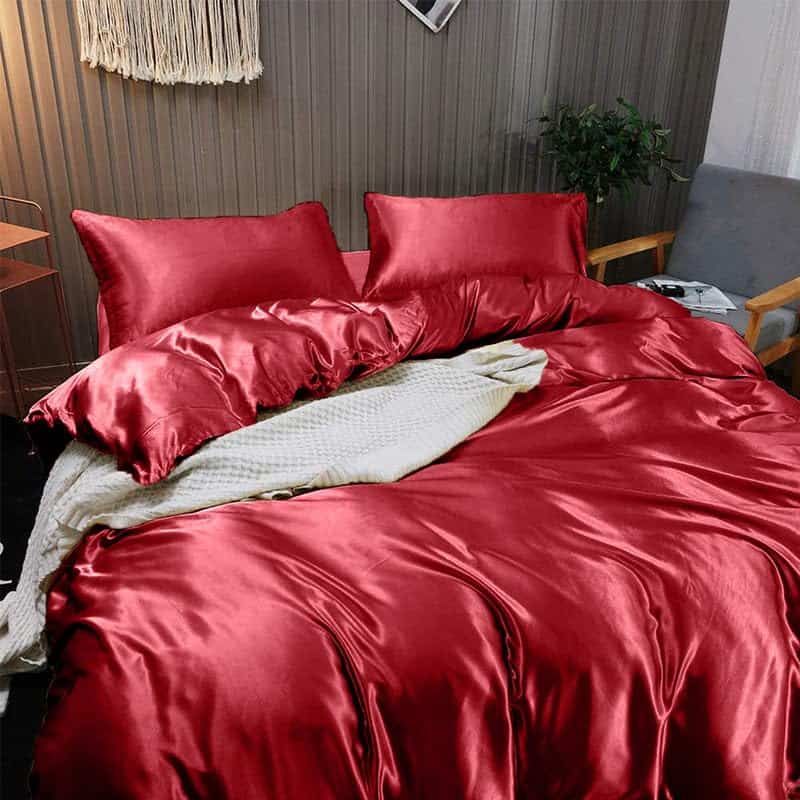 Juego de Sábanas de Seda Satinada 100% Pura -Burdeos